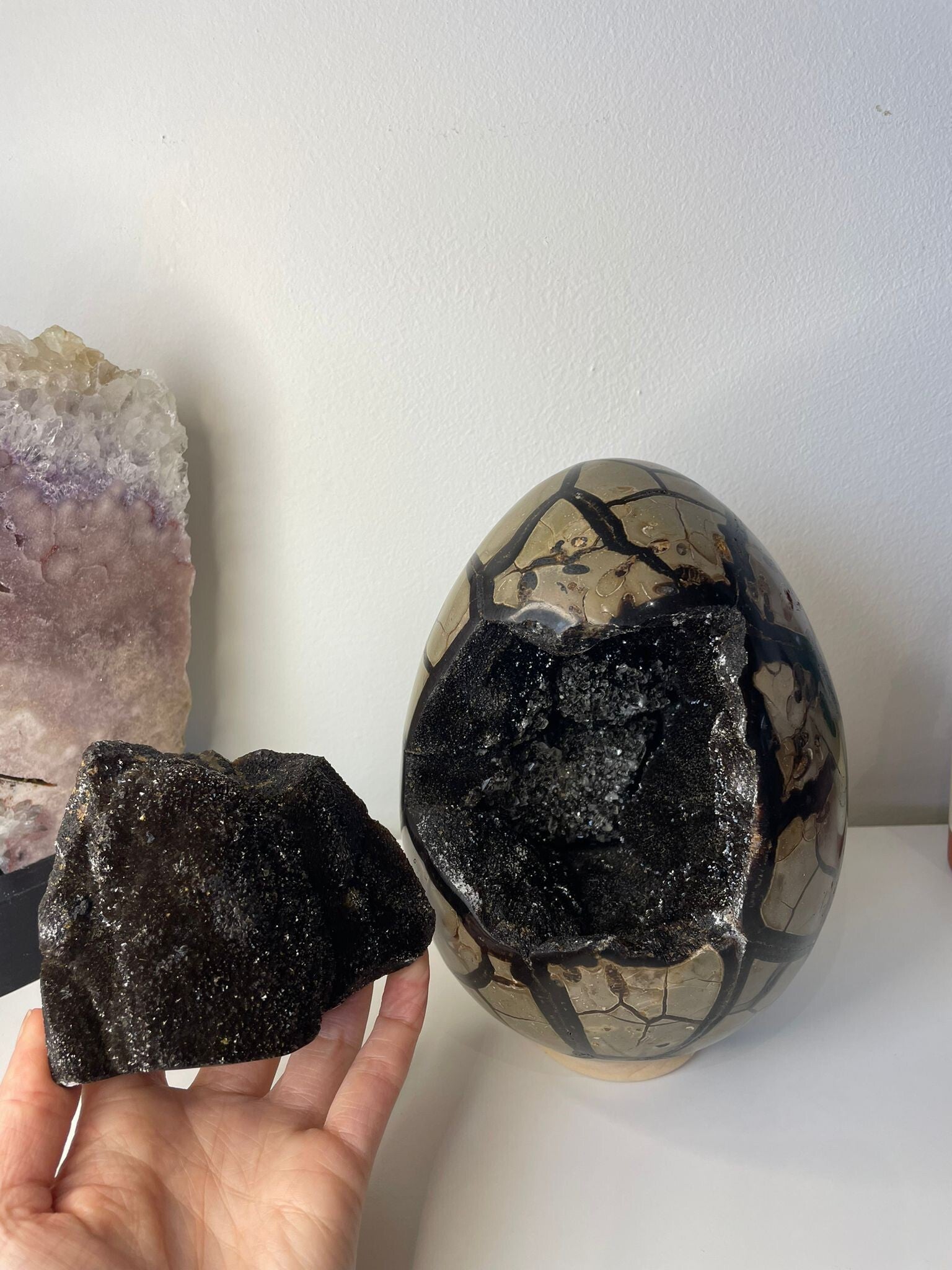 Leuk weetje: septarie wordt ook wel “drakensteen” genoemd, omdat het patroon doet denken aan de geschubde huid van een mythische draak. Een beetje natuurlijke fantasy, rechtstreeks uit de aarde.