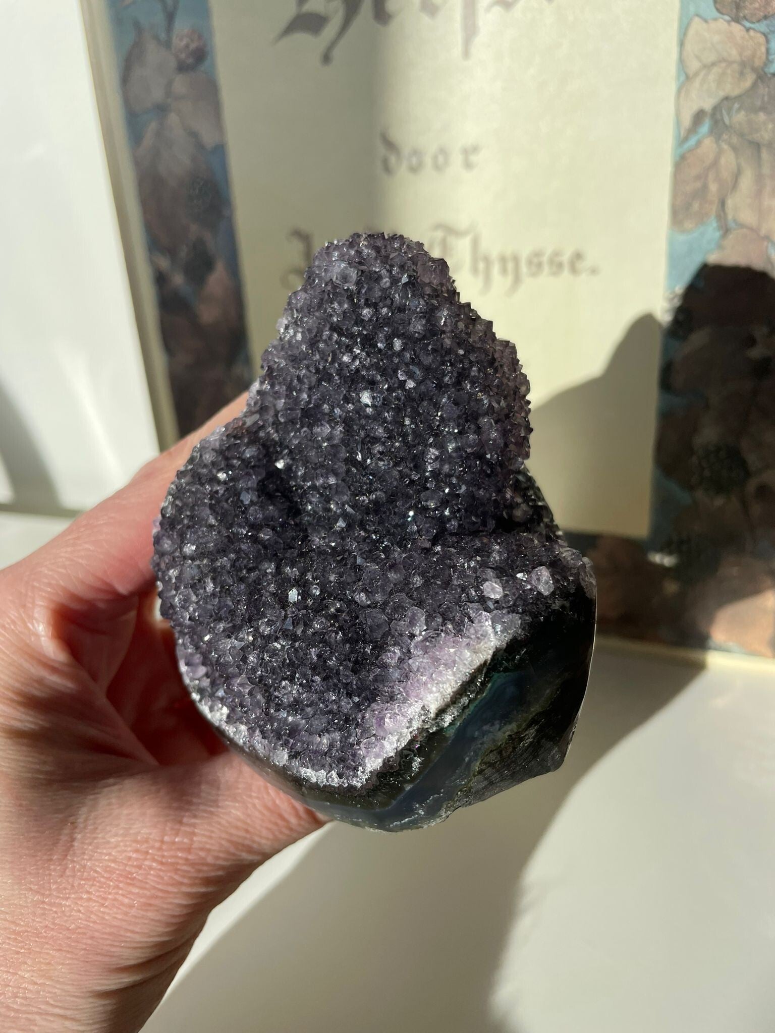 Al in de oudheid werd amethist hoog gewaardeerd. De oude Grieken geloofden dat de steen bescherming bood tegen dronkenschap – de naam komt van het Griekse amethystos, wat “niet bedwelmd” betekent. In de middeleeuwen werd ze gezien als symbool van wijsheid en spirituele zuiverheid.