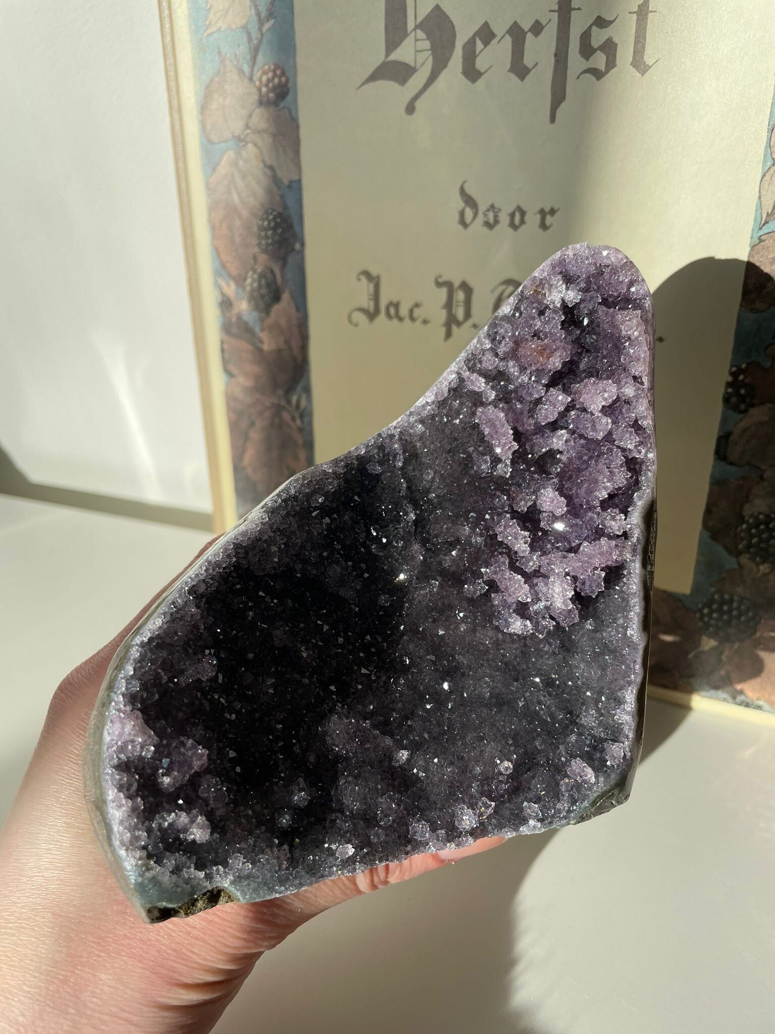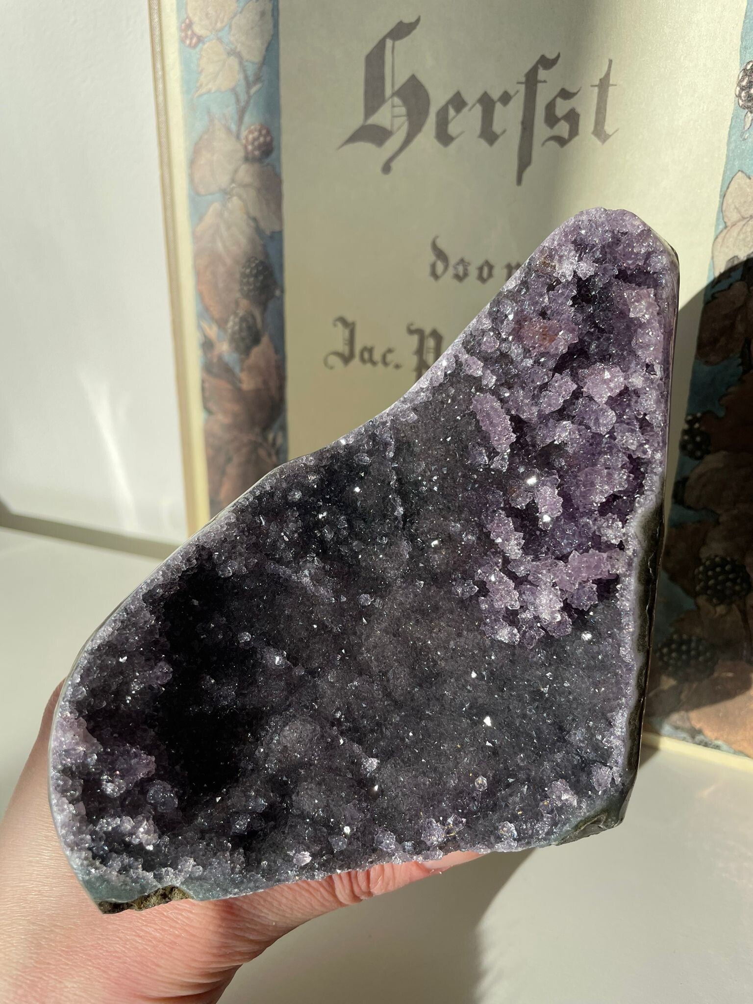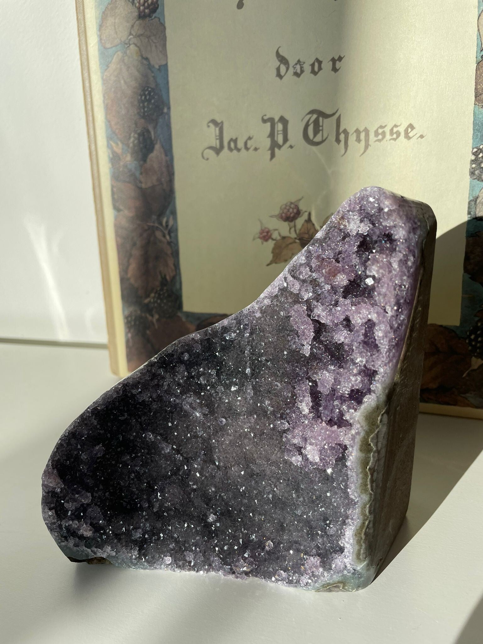 Amethist staat bekend om haar kalmerende werking. Ze helpt bij het loslaten van stress, bevordert helder denken en ondersteunt een goede nachtrust. Ook wordt ze vaak gebruikt bij meditatie of om rust te brengen in een drukke ruimte.