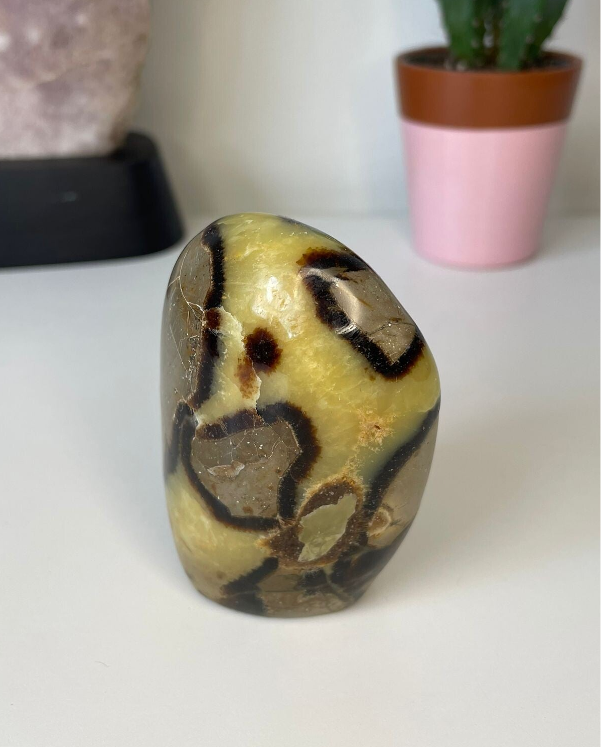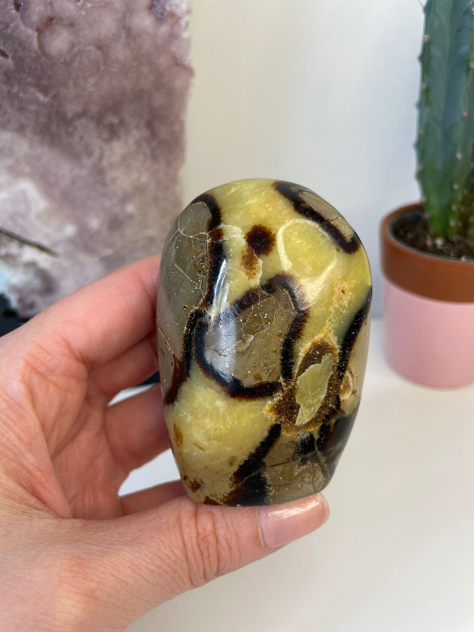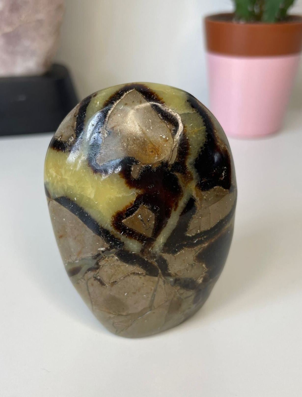 Leuk weetje: septarie wordt ook wel “drakensteen” genoemd, omdat het patroon doet denken aan de geschubde huid van een mythische draak. Een beetje natuurlijke fantasy, rechtstreeks uit de aarde.