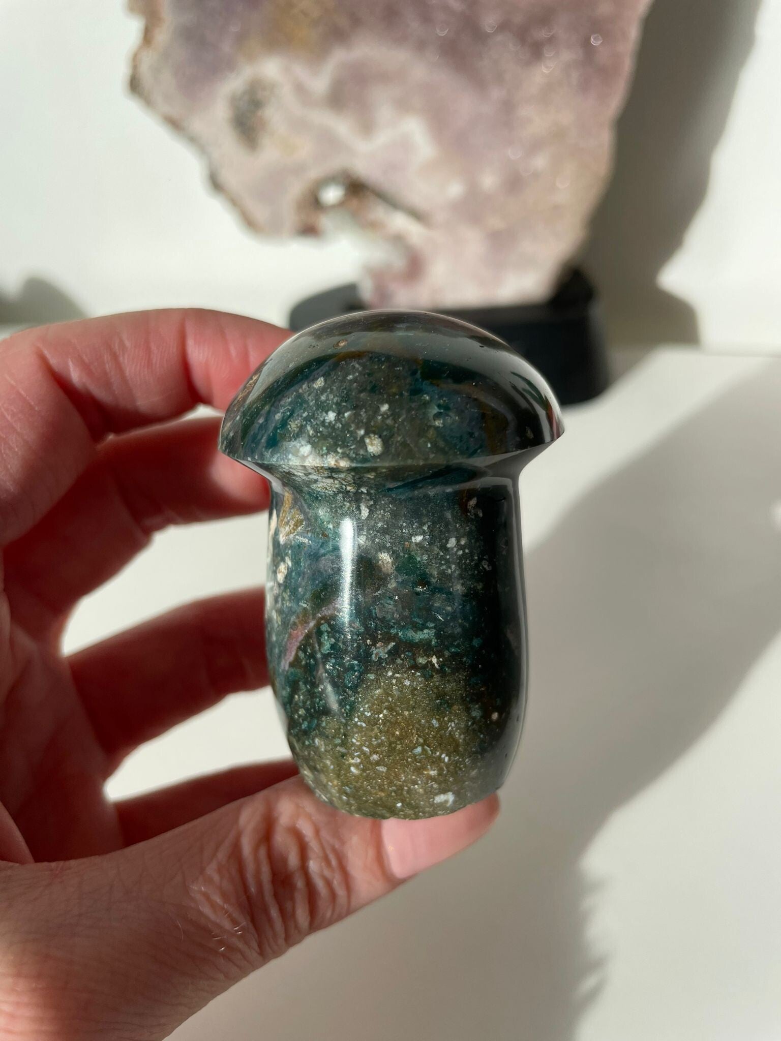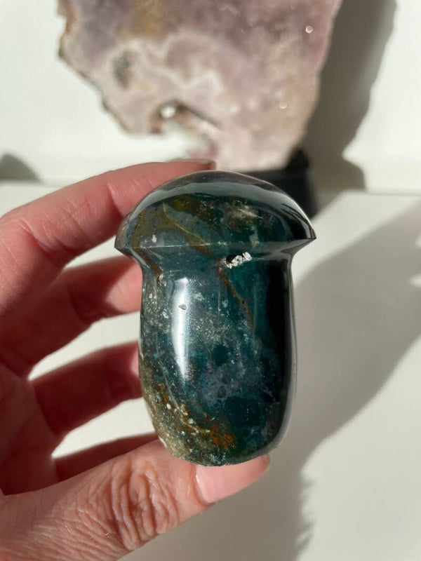 Oceaan jaspis valt op door z’n mooie mix van blauwe, groene, bruine en soms rode tinten. De natuurlijke patronen lijken wel op golven, koraalriffen of een onderwaterlandschap – een echte eyecatcher voor wie van natuur in al haar kleuren houdt. Elk stukje is uniek, waardoor geen steen hetzelfde is.