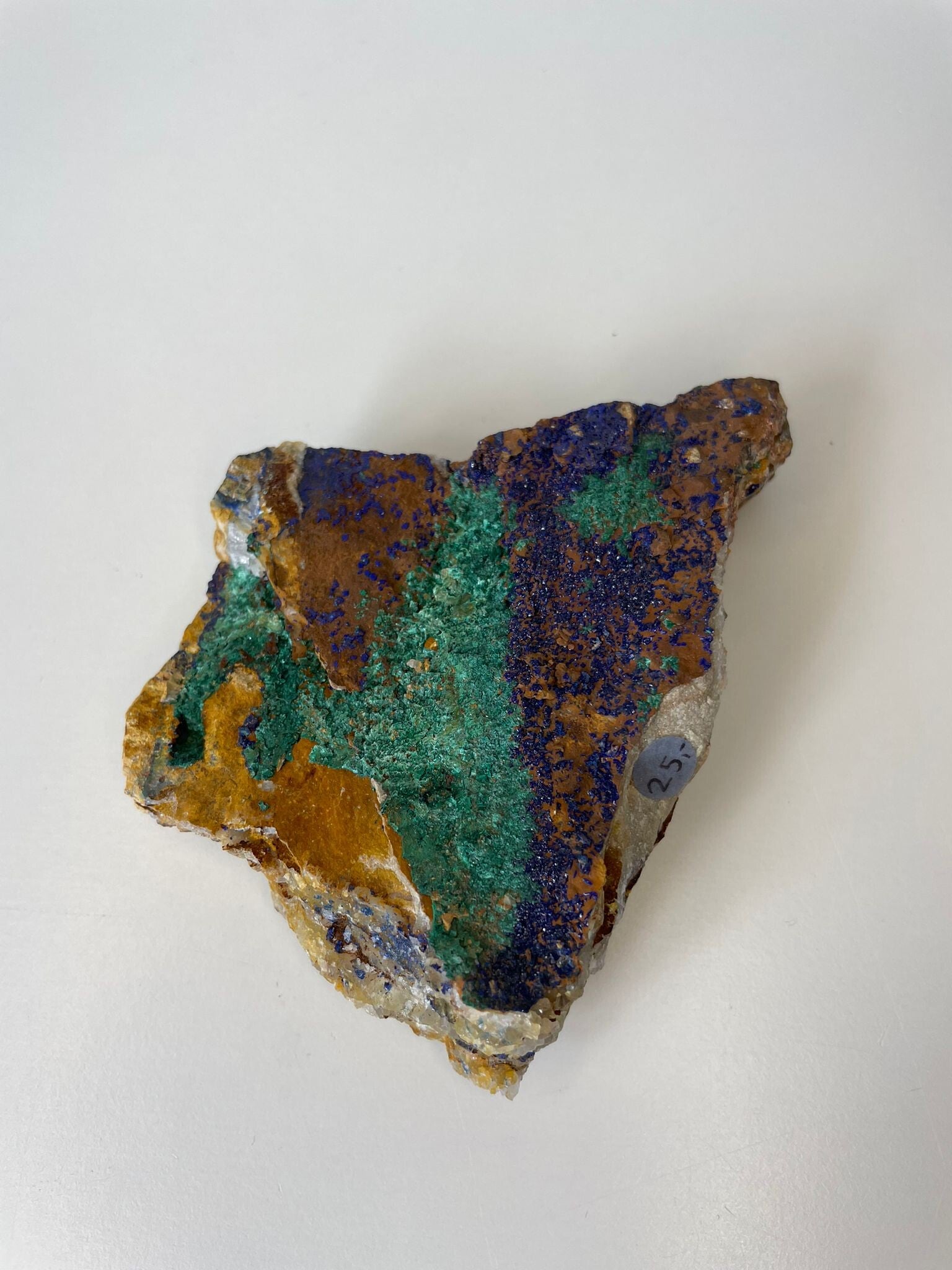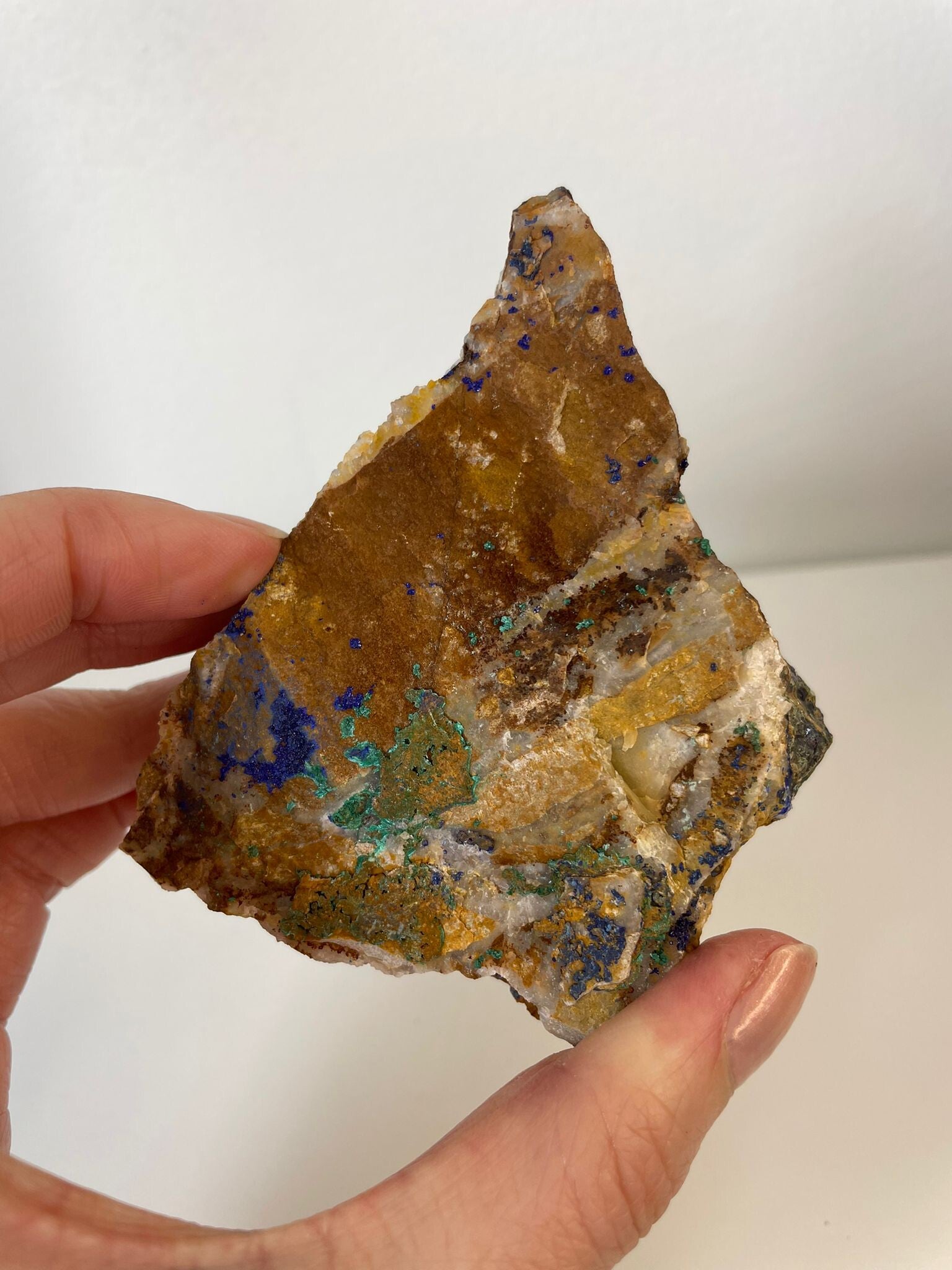 Deze prachtige blauwe verschijning wordt gevonden in onder andere Marokko, Australië en de VS. Soms komt hij voor in combinatie met malachiet, en dan krijg je een prachtig blauw-groen kunstwerkje van moeder natuur.