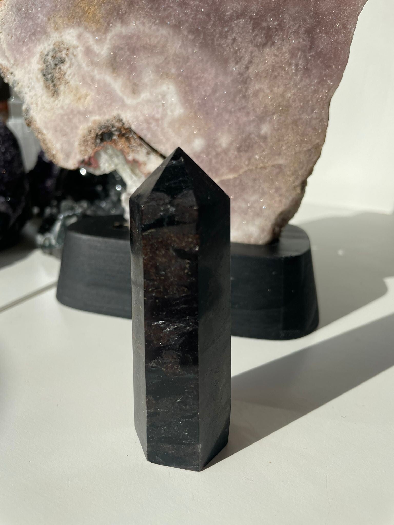Deze bijzondere verschijning komt vooral uit Rusland en Noorwegen, waar hij groeit in combinatie met donker moedergesteente. Het contrast tussen het diepe zwart en het sprankelende blauw maakt hem een echte eyecatcher voor wie van subtiele magie houdt.