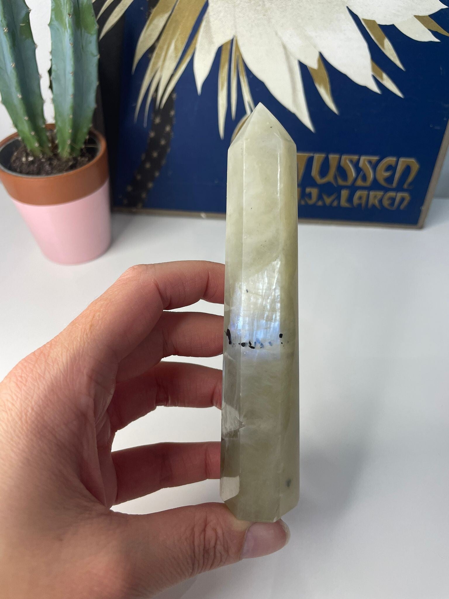 Groene maansteen is een betoverende variant van de bekende maansteen, maar dan met een zachte, groenige gloed die doet denken aan dauw op bladeren bij maanlicht. Zijn subtiele glans – ook wel adularescentie genoemd – lijkt van binnenuit te stralen en geeft de steen een bijna magisch karakter.