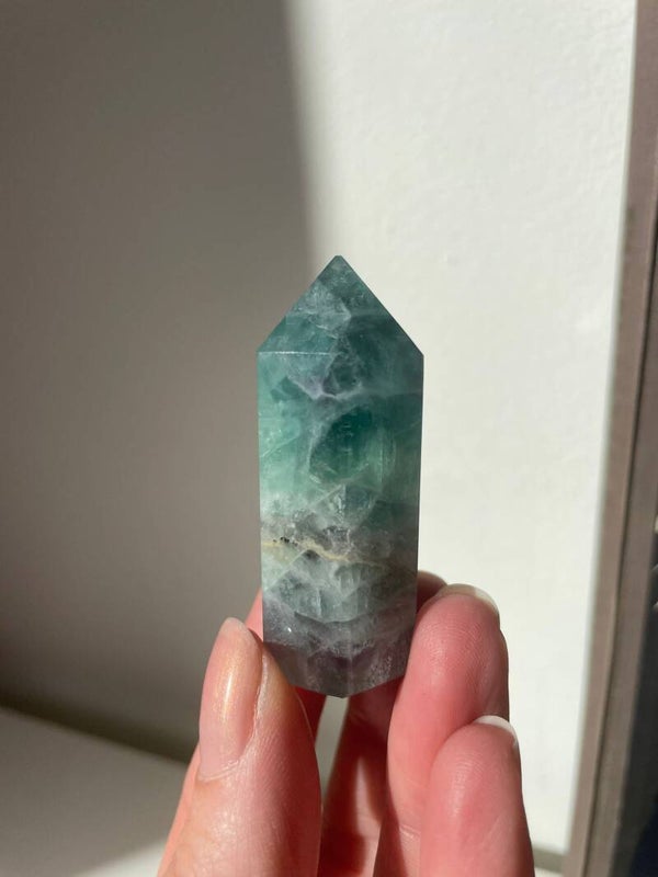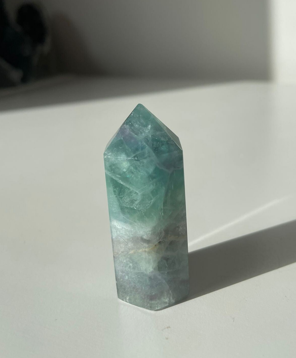 Regenboogfluoriet doet zijn naam eer aan: deze steen laat vaak prachtige lagen zien in paars, groen, blauw en soms zelfs geel. Elke laag is een nieuw stukje natuurkunst, waardoor geen twee stukken ooit hetzelfde zijn.