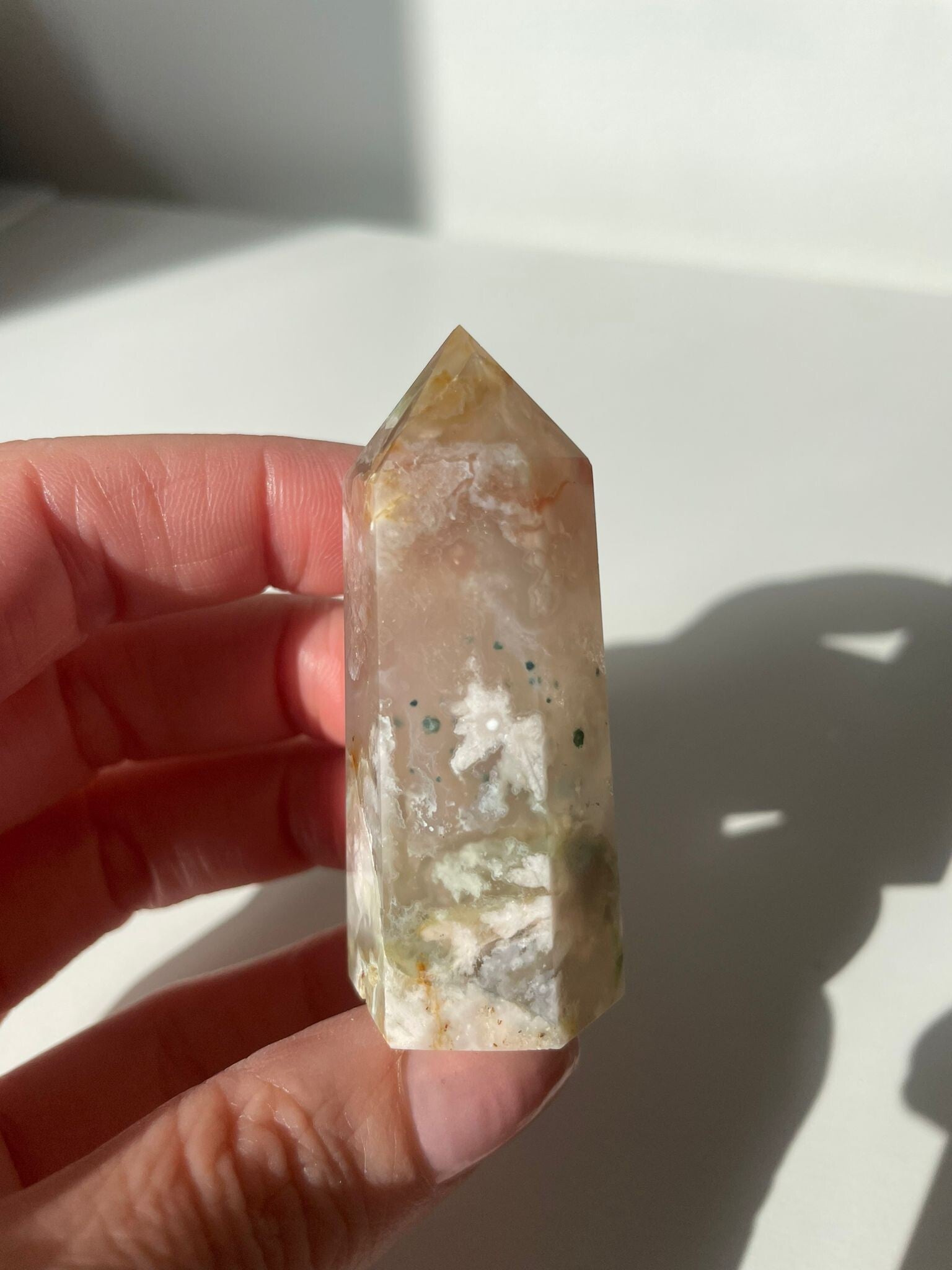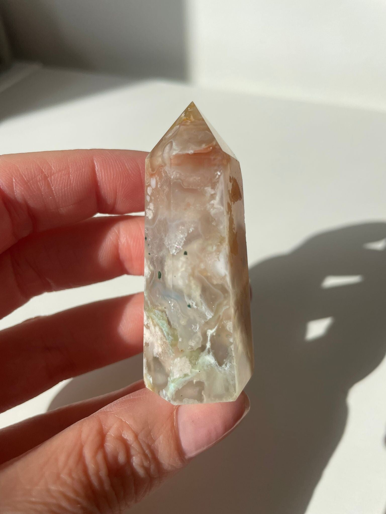Leuk weetje: de “bloemen” in bloemagaat ontstaan door kleine insluitsels van mineralen tijdens het kristalliseren. Hierdoor heeft elke steen zijn eigen unieke patroon – geen twee zijn hetzelfde!