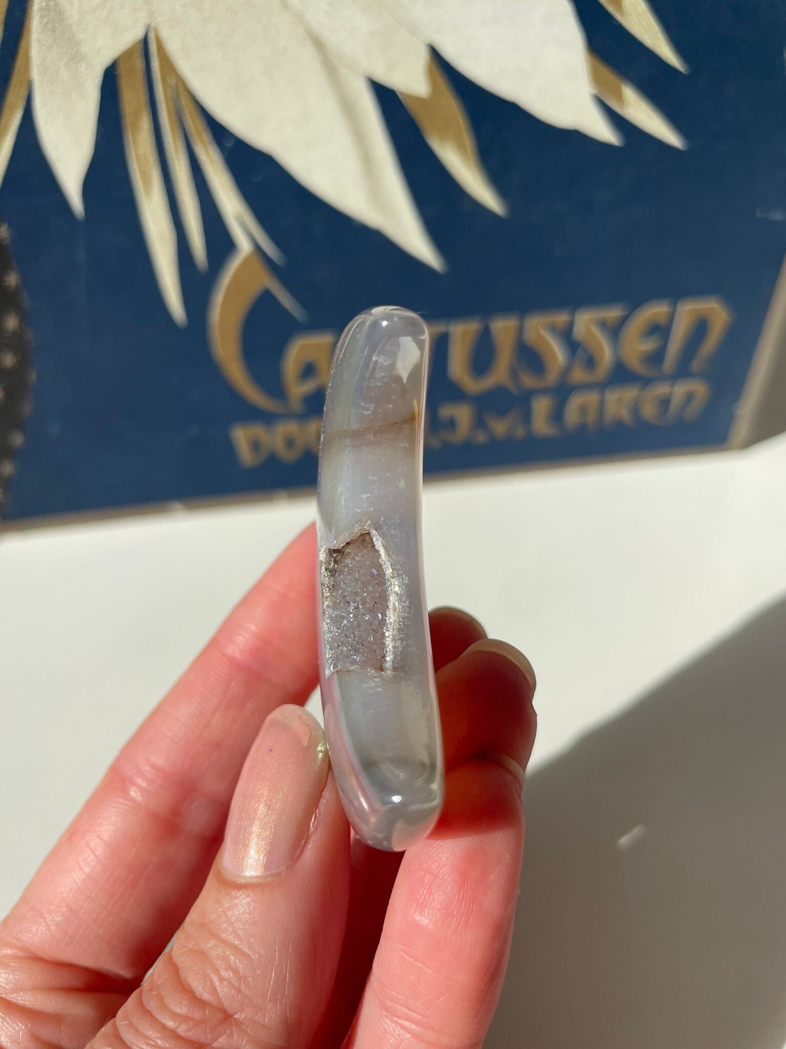 Agaat staat bekend om zijn stabiliserende en aardende werking. Hij brengt balans tussen lichaam, geest en emoties, en helpt je om met beide benen op de grond te blijven staan – ook wanneer het leven even stormachtig is. Een fijne metgezel voor focus, innerlijke rust en zelfvertrouwen.