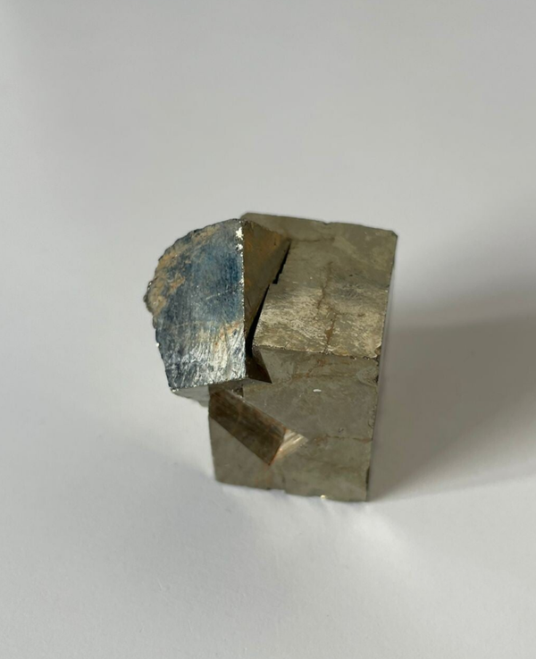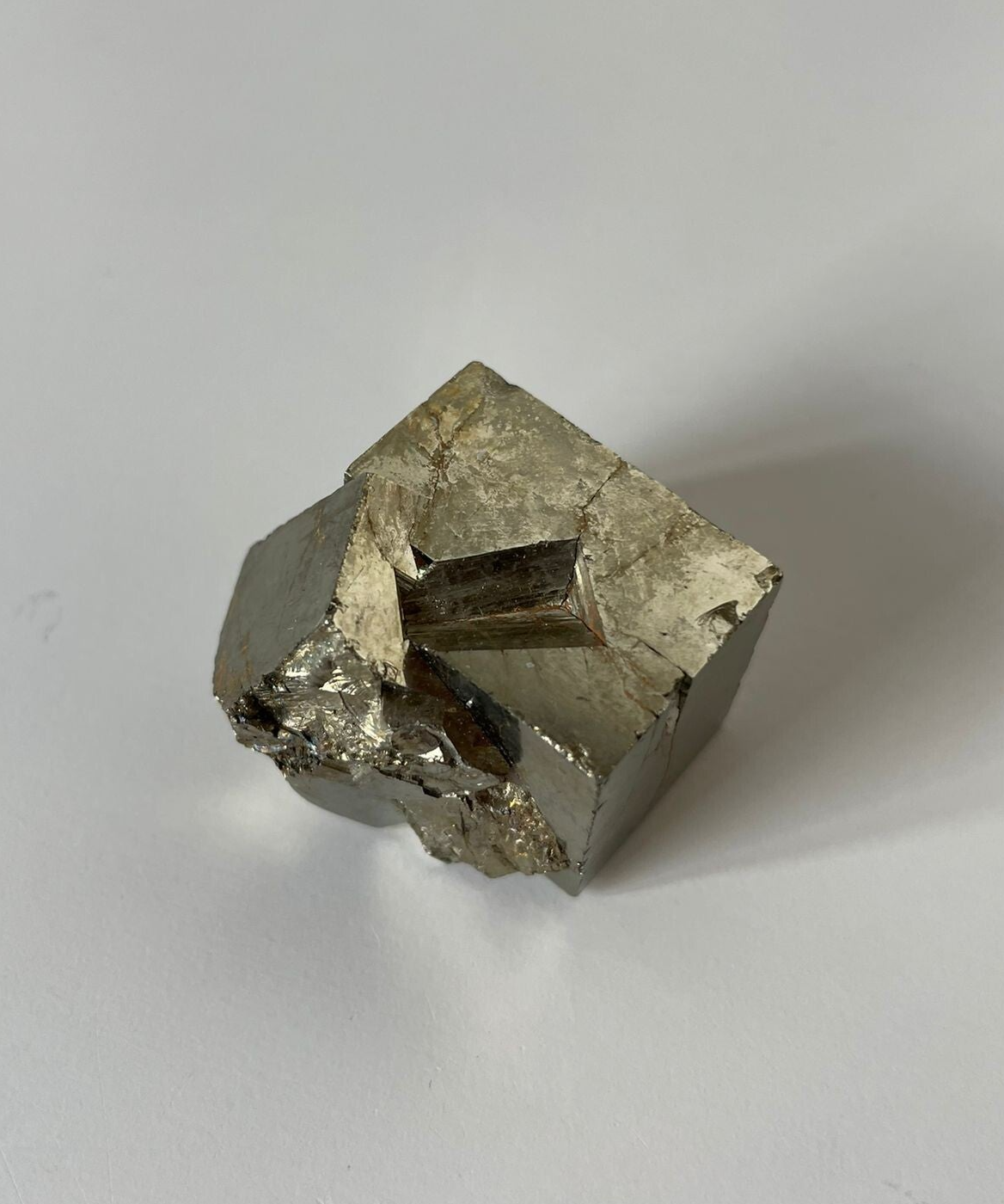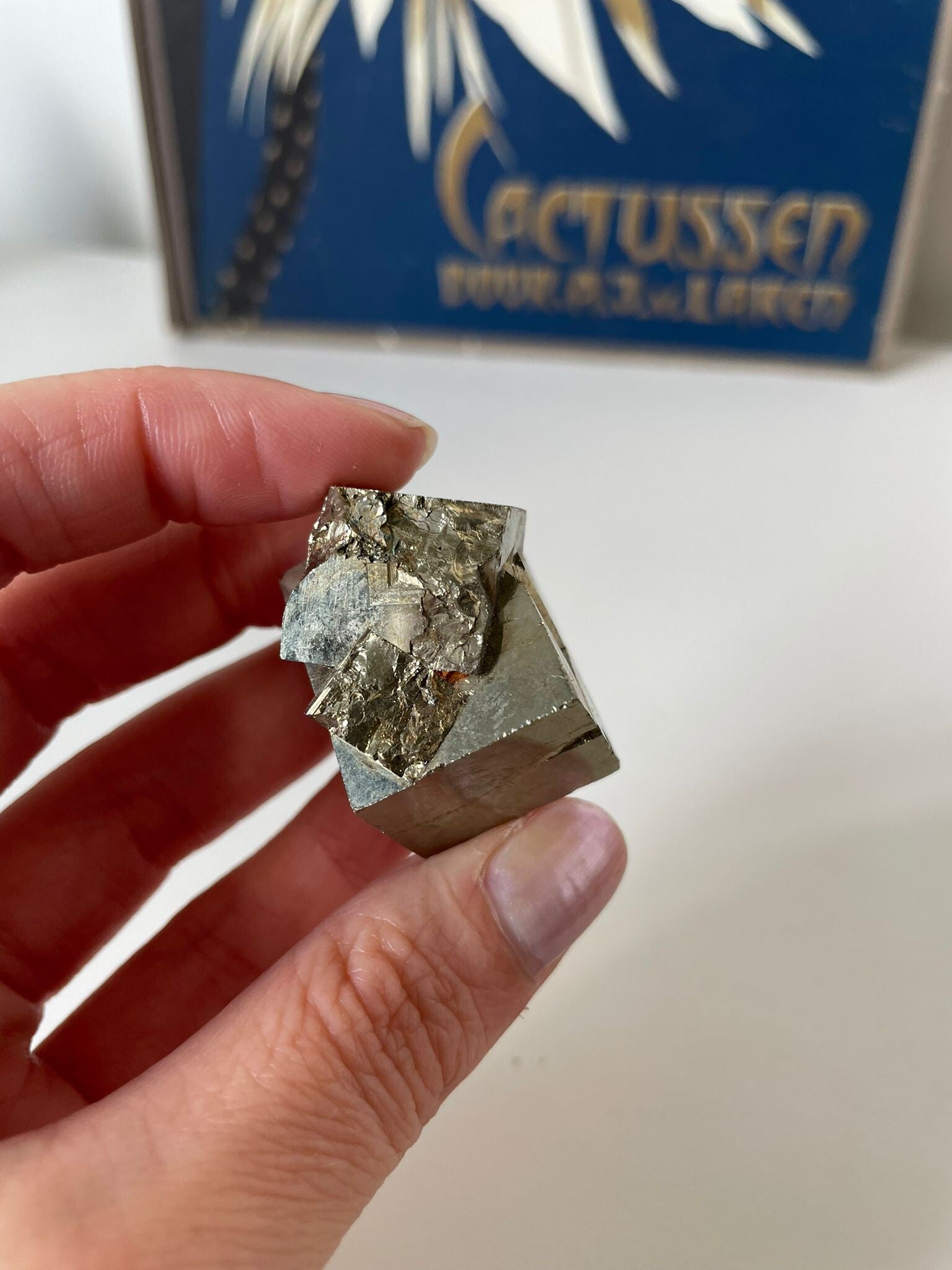 Kubus Pyriet valt direct op door zijn opvallende, regelmatige kubusvormen en glimmende metalen glans. Pyriet, ook wel "fool’s gold" genoemd, dankt zijn bijnaam aan zijn gouden kleur en glans, die op echt goud lijkt, maar een stuk vriendelijker voor je portemonnee is.