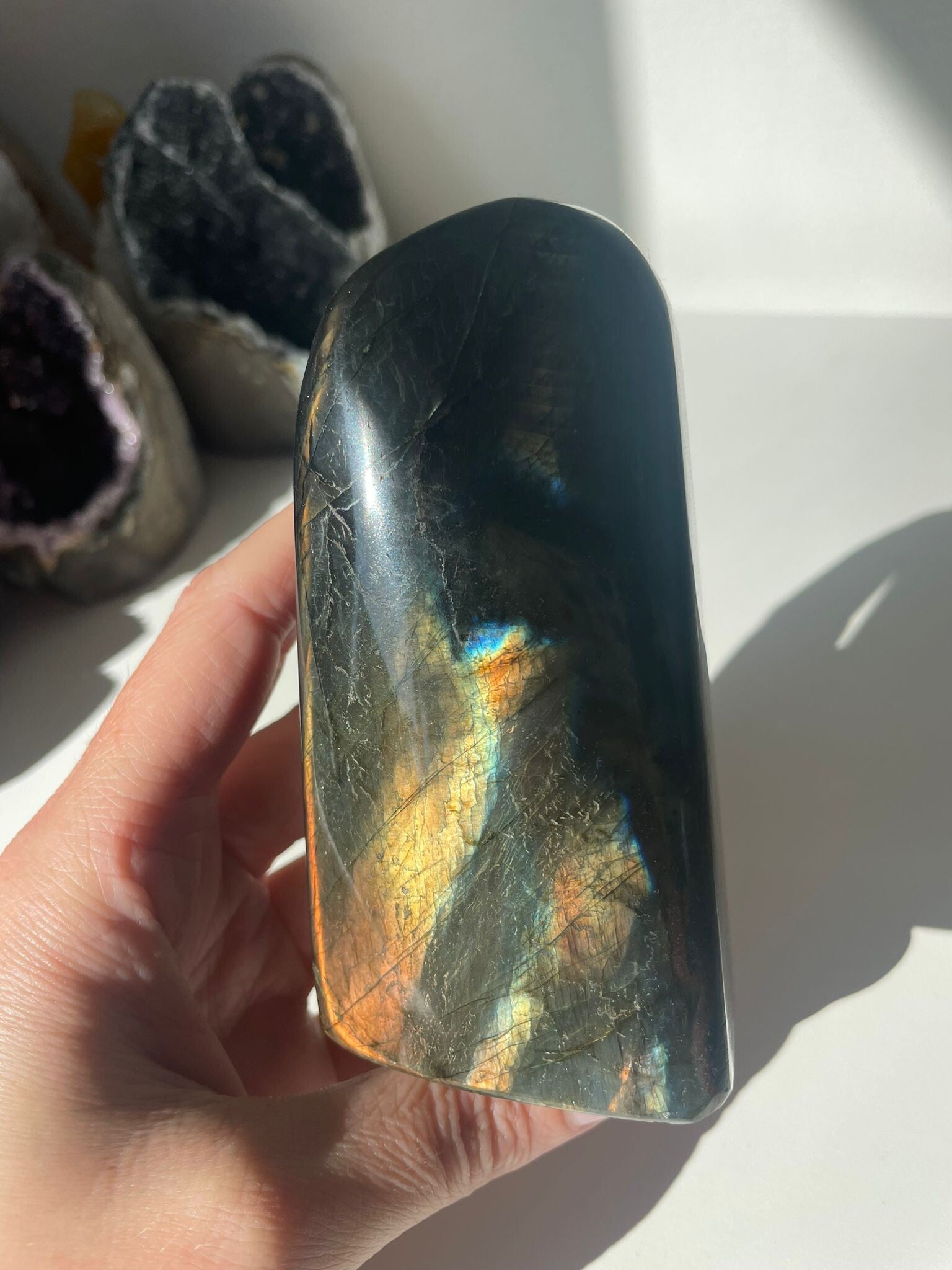 Labradoriet wordt vaak verzameld door liefhebbers van mineralen en edelstenen vanwege zijn unieke uitstraling en magische glans. Het is een steen die uitnodigt om te verwonderen en ontdekken: elke steen heeft een eigen patroon en kleurenpalet, waardoor geen enkel stukje hetzelfde is. Labradoriet staat bekend als een steen die intuïtie en creativiteit stimuleert. Hij nodigt uit tot zelfreflectie, helpt je open te staan voor nieuwe ideeën en kan een subtiel gevoel van bescherming geven tijdens drukke of uitdagende momenten.