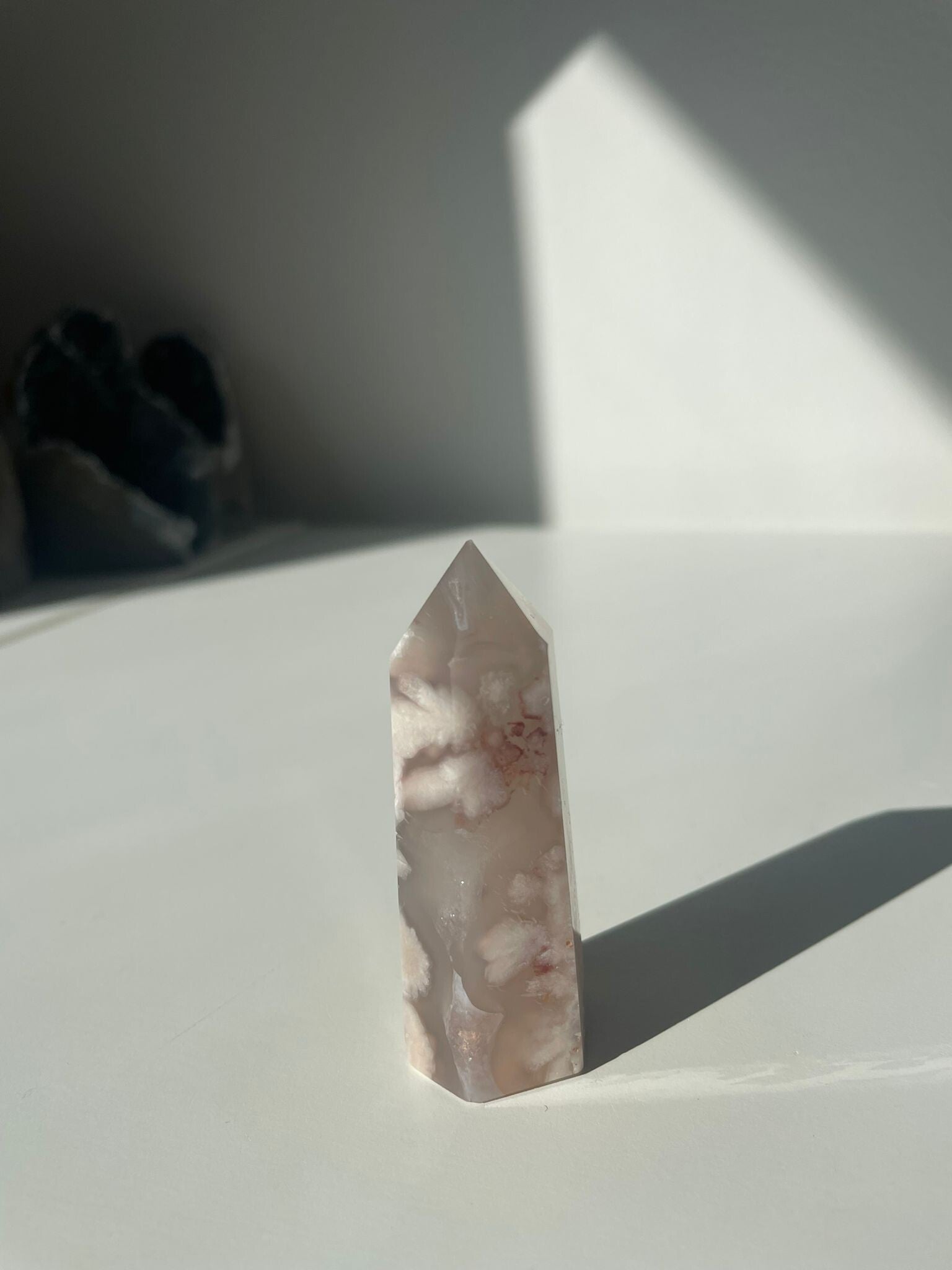 Bloemagaat wordt gevonden in onder andere Brazilië, India en Madagascar. Door de zachte uitstraling is het een fijne steen om bij je te hebben voor momenten van rust of gewoon om van te genieten als mooie blikvanger.