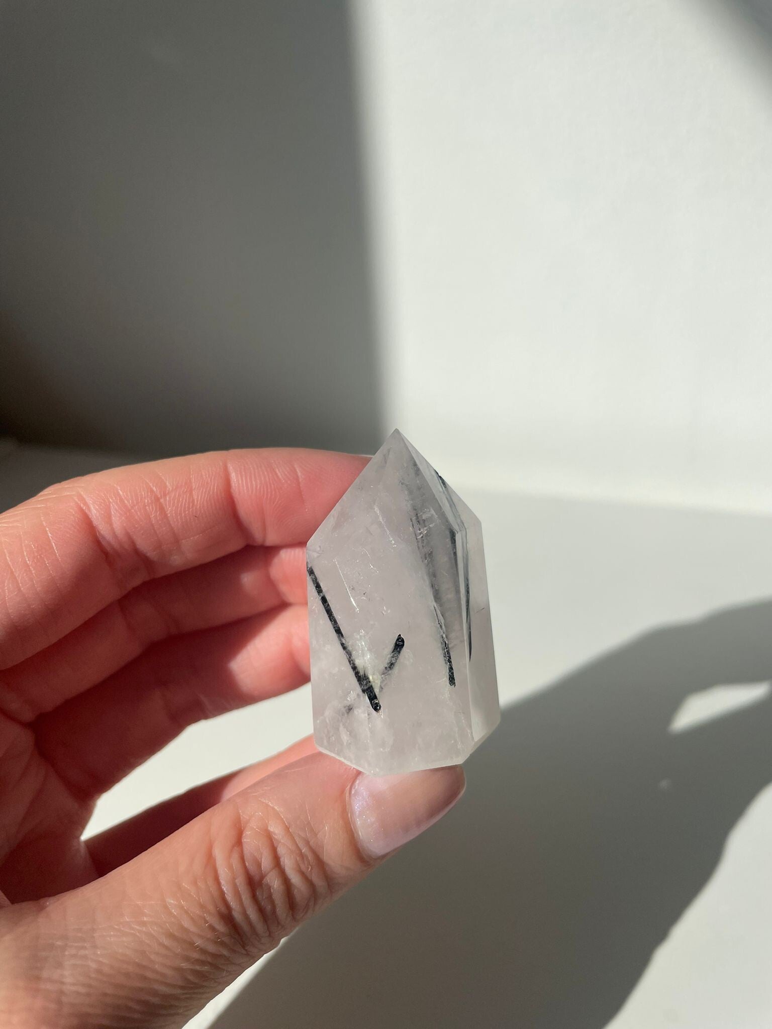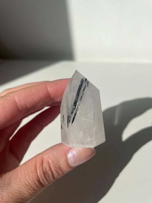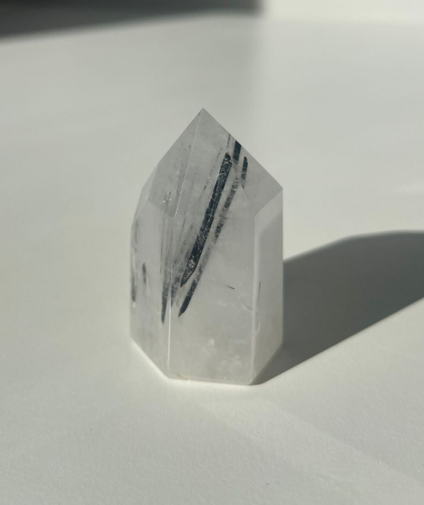 Toermalijn in kwarts is een fascinerende combinatie waarbij zwarte toermalijnnaaldjes als fijne lijnen of streepjes zichtbaar zijn in helder of melkachtig kwarts. Het resultaat: een steen die eruitziet alsof de natuur zelf grafische kunst heeft gemaakt. Je vindt dit bijzondere duo onder andere in Brazilië, Madagaskar, Pakistan en China.