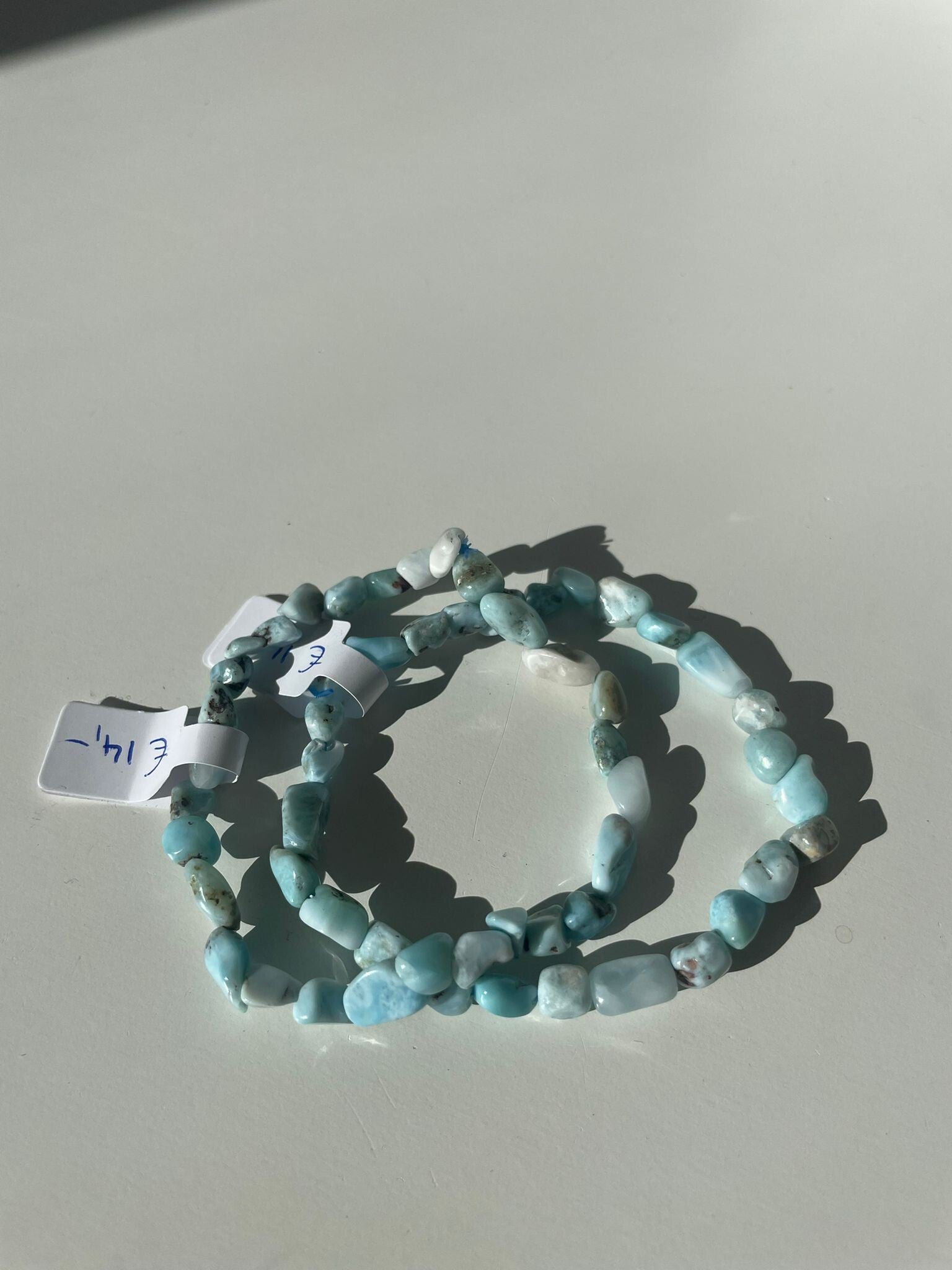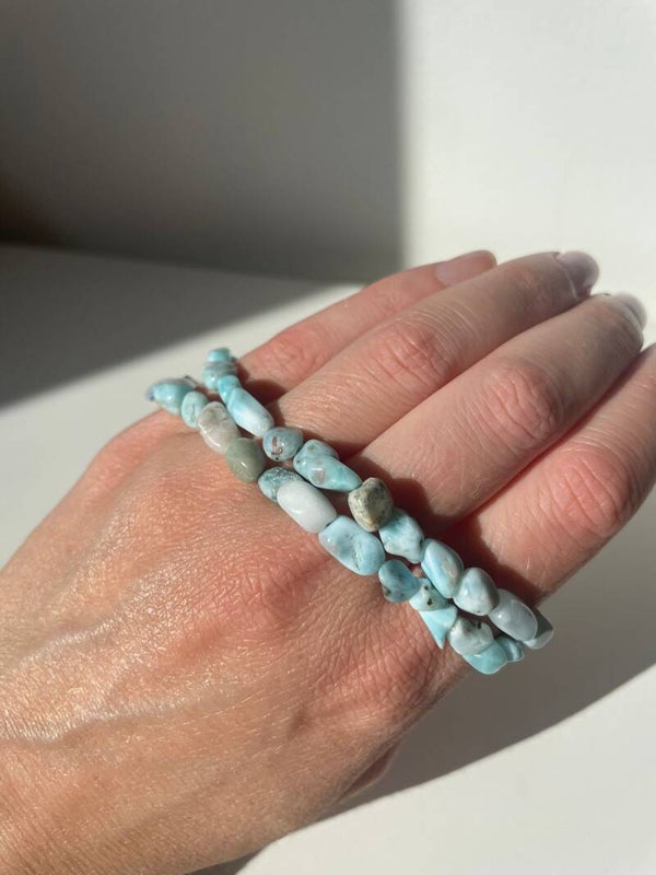 Larimar is een zeldzame en betoverende blauwe steen die alleen wordt gevonden in de Dominicaanse Republiek. De kleur varieert van zachtblauw tot turquoise, soms met witte wolken of golvende patronen, alsof je naar het heldere water van een tropische zee kijkt. Geen wonder dat Larimar vaak de bijnaam Steen van de Caribische Zee krijgt!