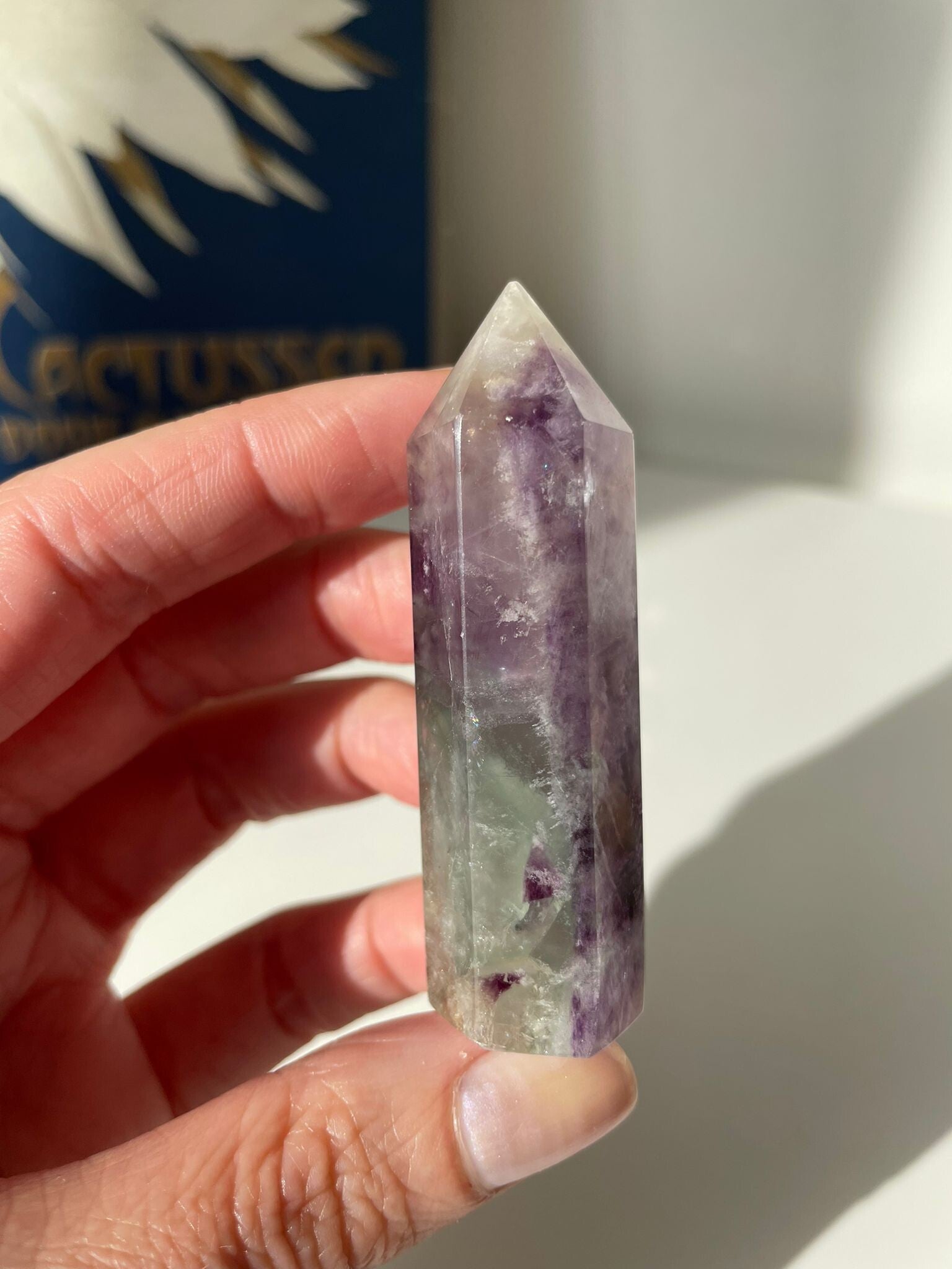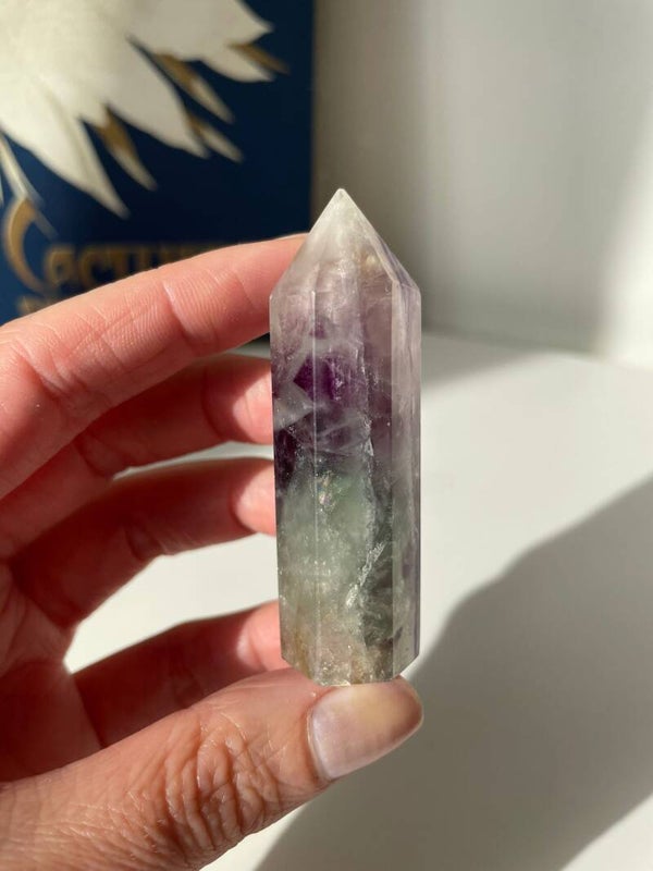 Regenboogfluoriet doet zijn naam eer aan: deze steen laat vaak prachtige lagen zien in paars, groen, blauw en soms zelfs geel. Elke laag is een nieuw stukje natuurkunst, waardoor geen twee stukken ooit hetzelfde zijn.