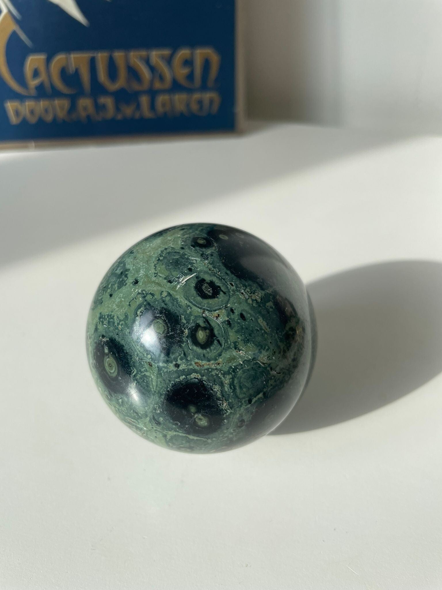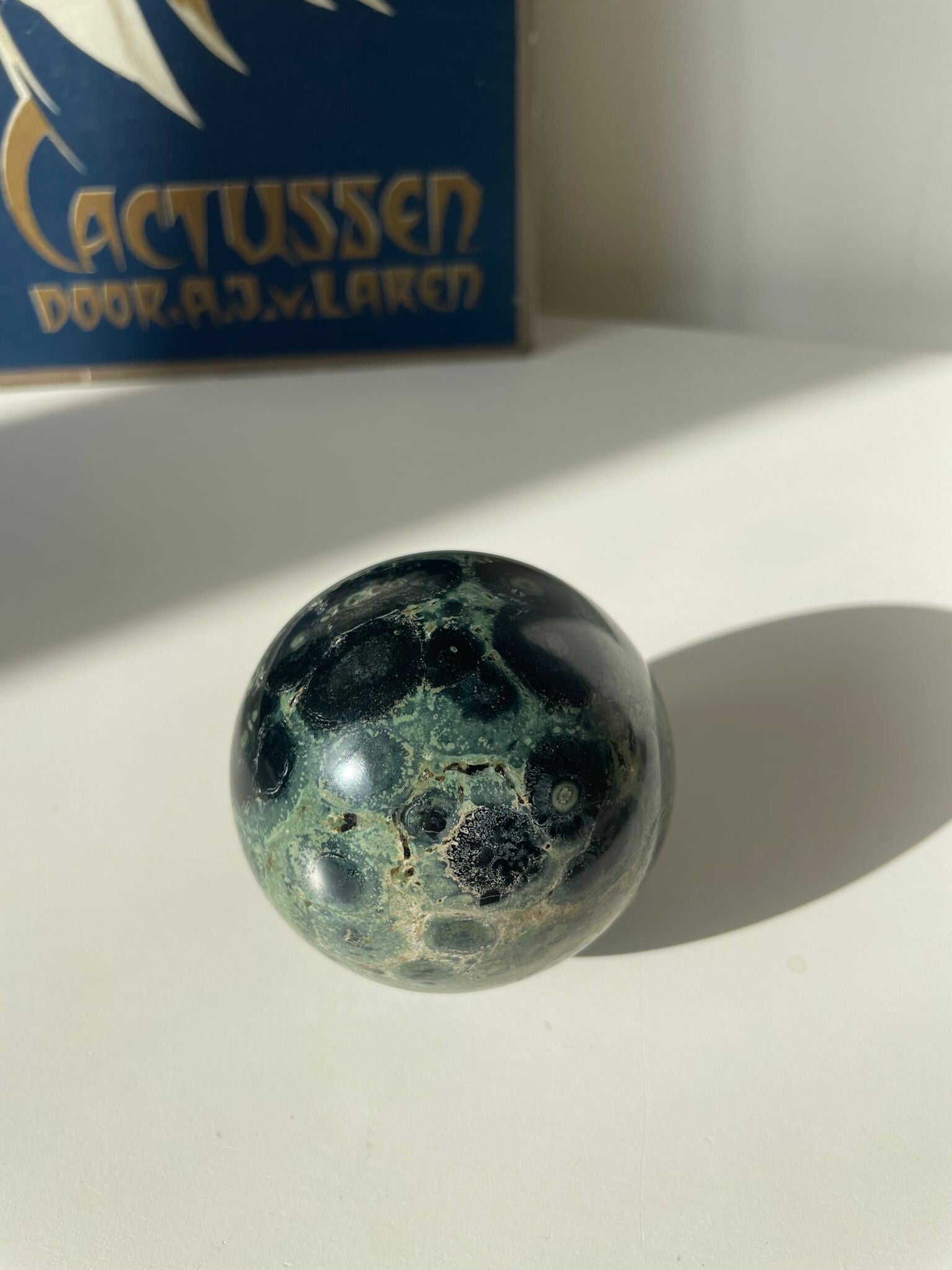 Kambaba Jaspis is een fascinerende groene steen met donkere, cirkelvormige patronen die lijken op kleine eilandjes in een diep groen meer. De steen bestaat uit fossiele algen en mineralen en is daardoor niet alleen mooi om naar te kijken, maar ook een stukje geschiedenis in je hand. Kambaba Jaspis wordt voornamelijk gevonden in Madagaskar, waar hij miljoenen jaren geleden ontstond.