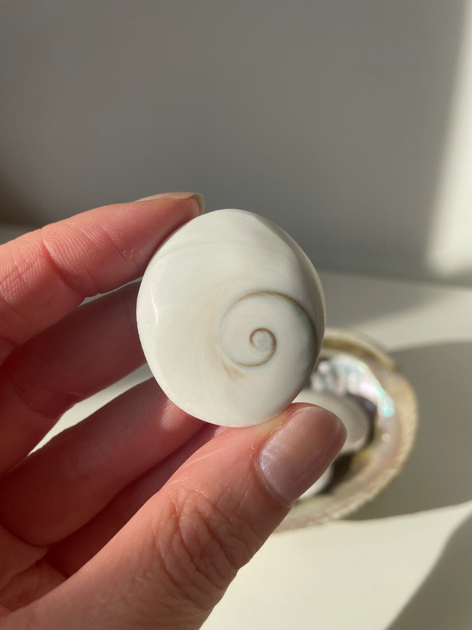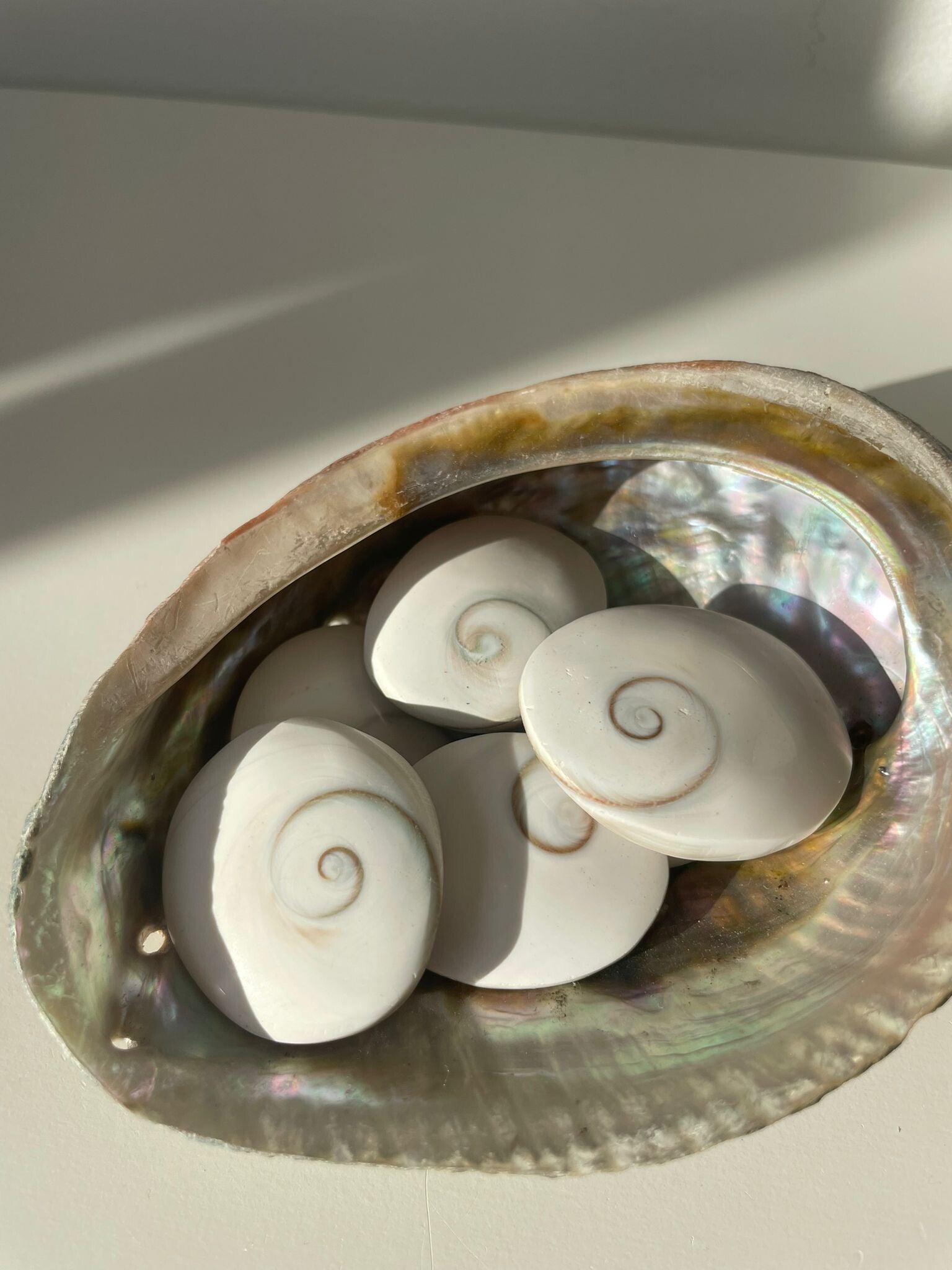 De Eye of Shiva is een klein wonder uit de oceaan. Het is namelijk geen edelsteen, maar het operculum – oftewel het deurtje – van een zeeslak. Wanneer de slak zich terugtrekt in zijn schelp, sluit dit gladde plaatje hem helemaal af van de buitenwereld. Aan de ene kant is het wit en glad, terwijl de andere kant vaak een prachtige spiraal toont. En precies die spiraal lijkt op een oog: het “derde oog” van de hindoeïstische god Shiva.