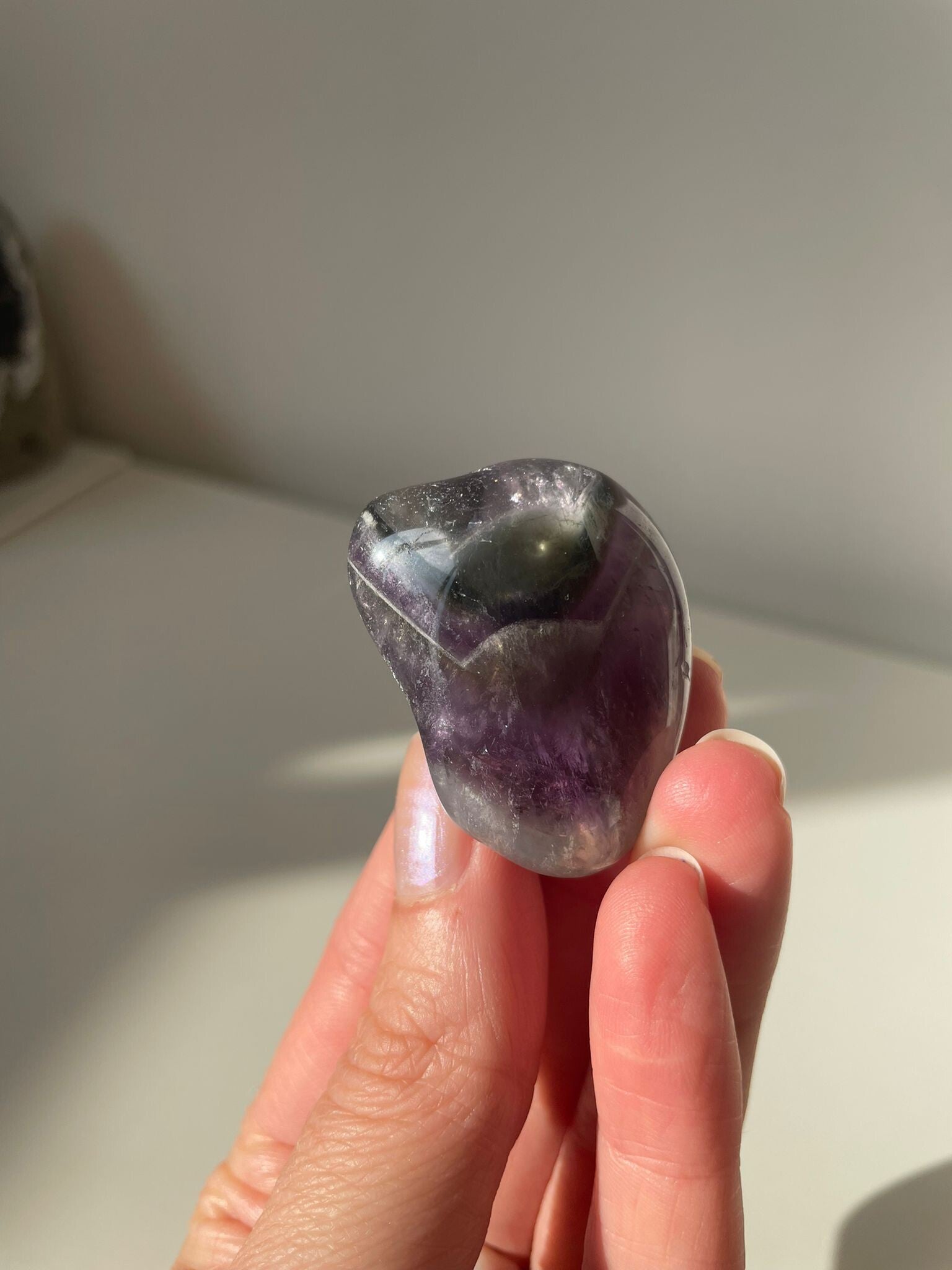 Amethist staat bekend om haar kalmerende werking. Ze helpt bij het loslaten van stress, bevordert helder denken en ondersteunt een goede nachtrust. Ook wordt ze vaak gebruikt bij meditatie of om rust te brengen in een drukke ruimte.