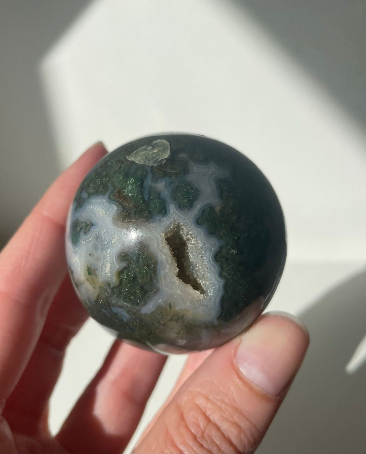 Mosagaat is een prachtige variëteit van agaat die eruitziet alsof er kleine mosjes of takjes in de steen zijn gegroeid. Het geheim zit in de insluitsels van mineralen, meestal groen van kleur, die doorzichtig of wit kwarts doorkruisen. Daardoor lijkt elke steen een mini-landschapje op zichzelf.