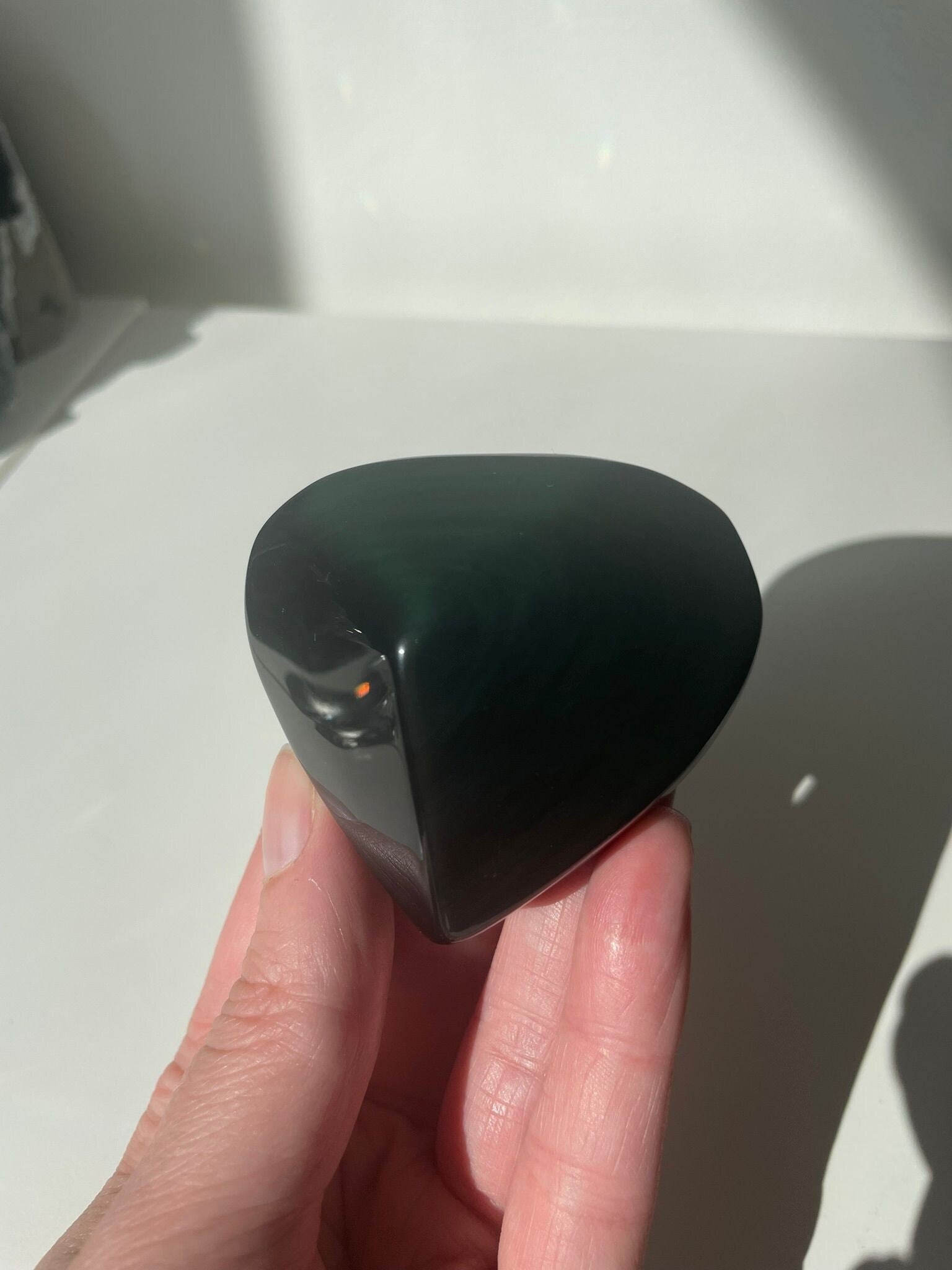 Dit hart laat met zonlicht of een felle lamp op zich een prachtige groene glans zien!