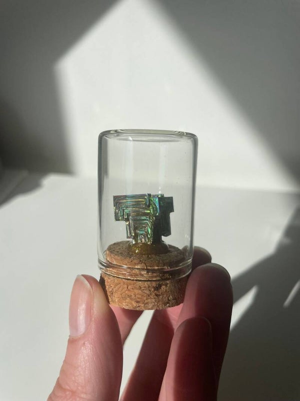 Van oorsprong komt bismut als element uit de aardkorst en wordt het onder andere gewonnen in Bolivia, Peru en China. De kleurrijke kristallen die je vaak ziet zijn dus smeltproducten, en dat maakt ze extra bijzonder: ze laten zien wat er gebeurt als natuur en wetenschap elkaar ontmoeten.