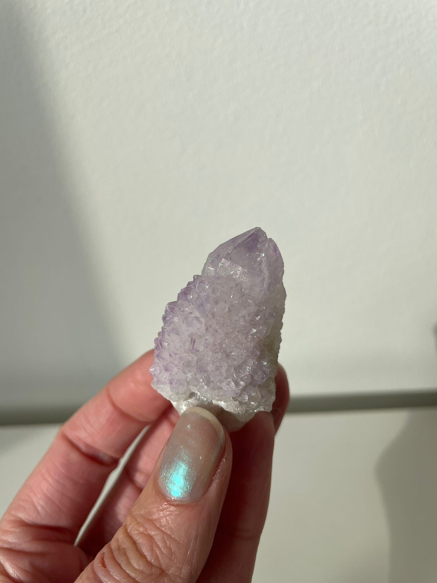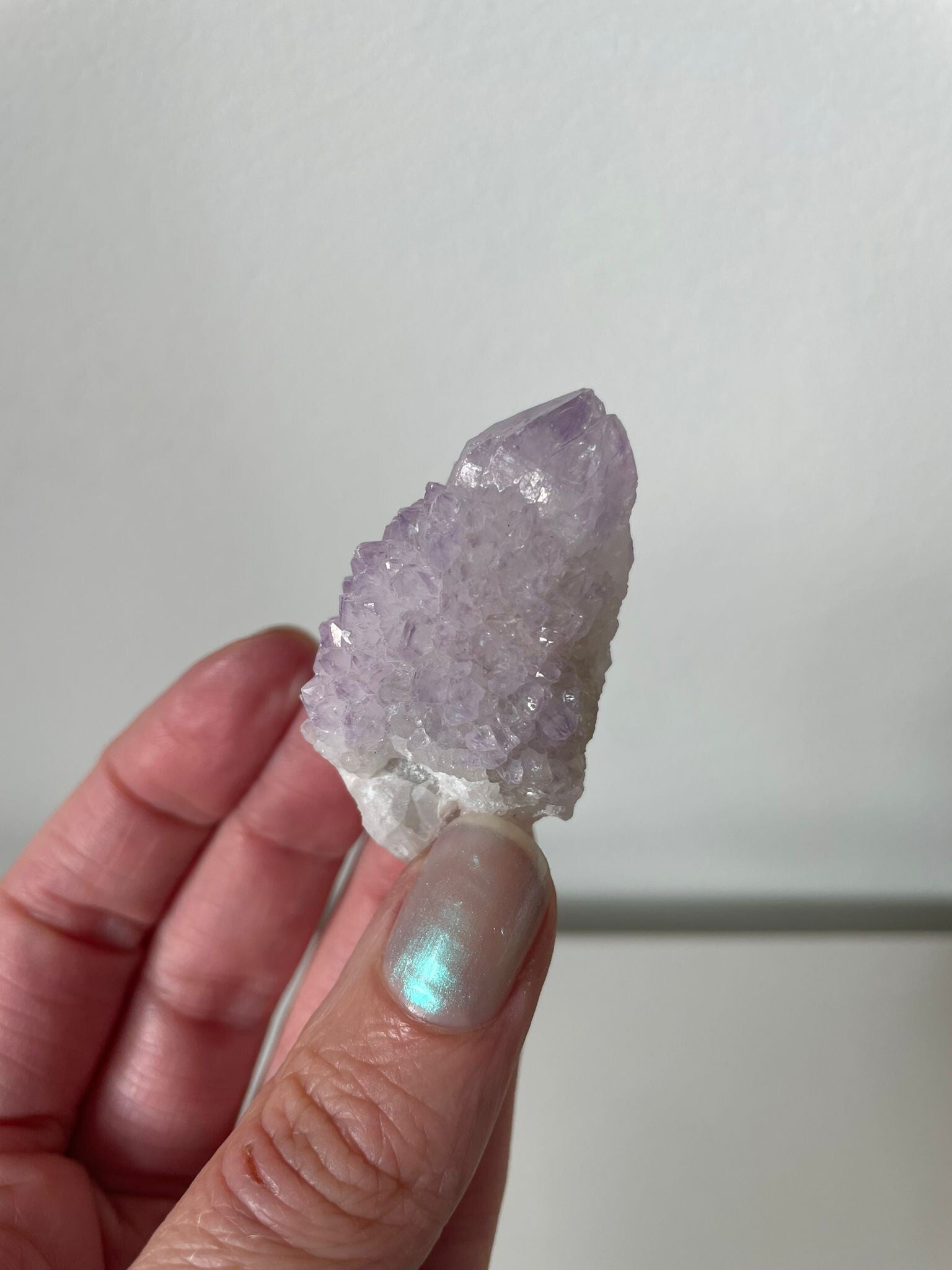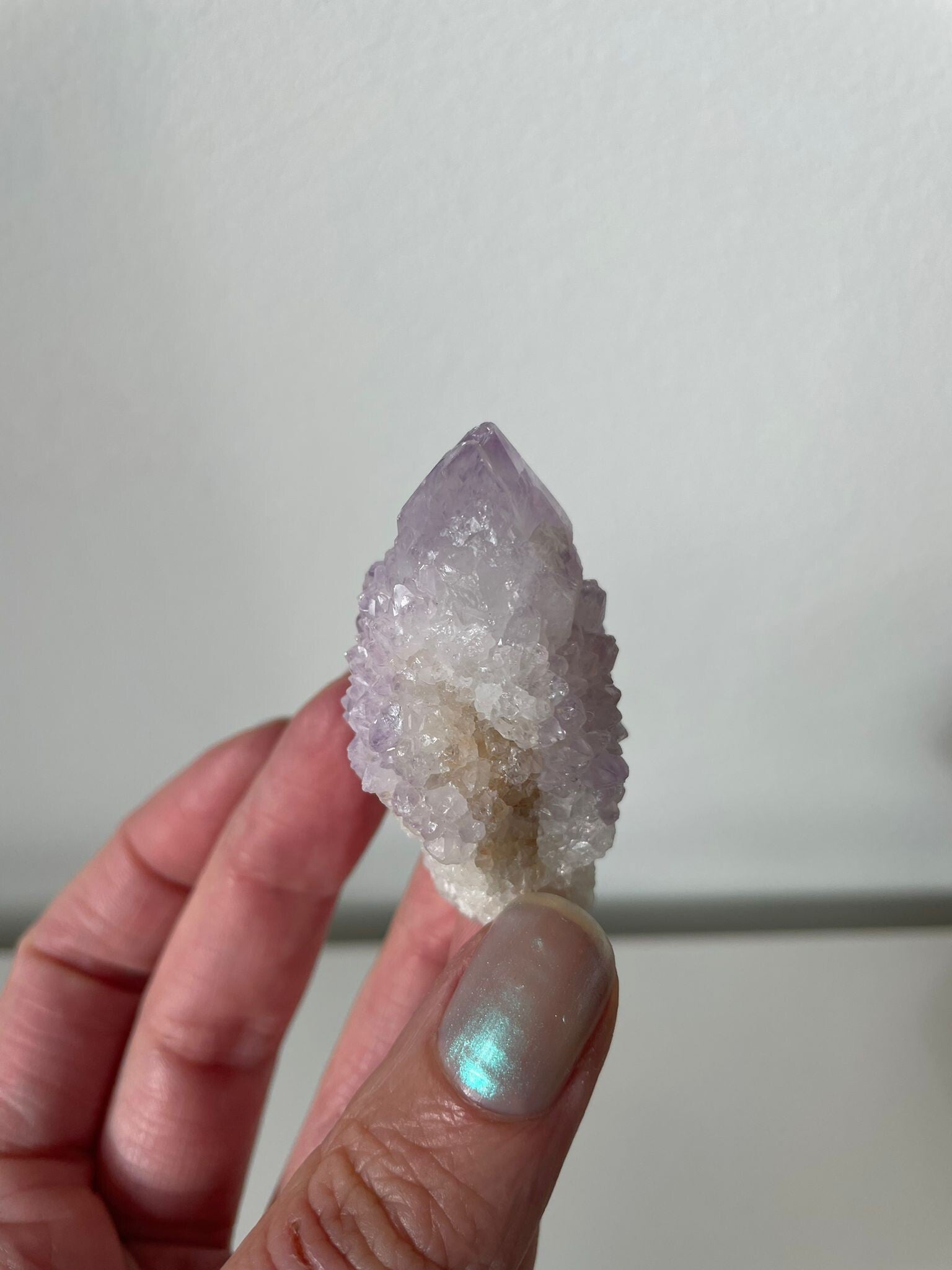 Leuk weetje: Spirit kwarts wordt ook wel “Cactus Kwarts” genoemd wanneer de kleine kristalletjes uit een centrale punt lijken te groeien, alsof een miniatuur cactus uit de steen oprijst. Een prachtig natuurwonder om van dichtbij te bekijken!