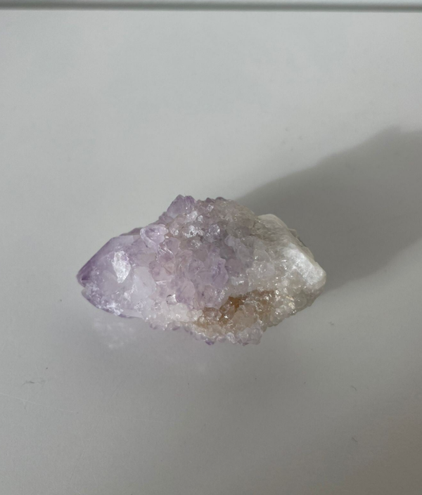 Spirit kwarts is een bijzondere variant van bergkristal, herkenbaar aan de meerdere kleine kristallen die samen één groter kristal vormen. Het lijkt alsof de steen zijn eigen mini-universum bevat: elk kristalletje vangt het licht net iets anders en zorgt voor een speels effect. Spirit kwarts kan helder wit, lichtpaars of zelfs een combinatie van beide zijn, waardoor elk stuk uniek oogt.