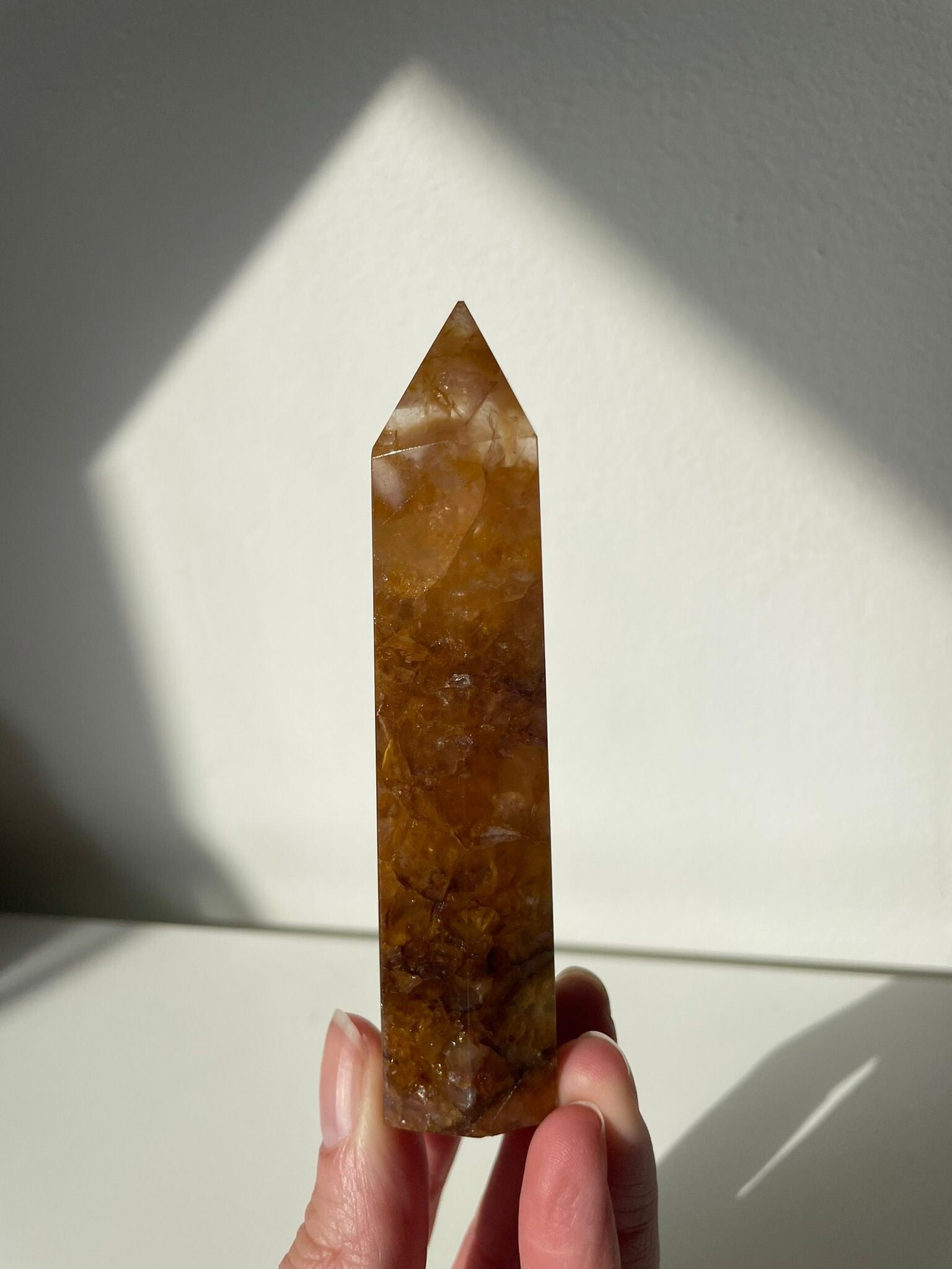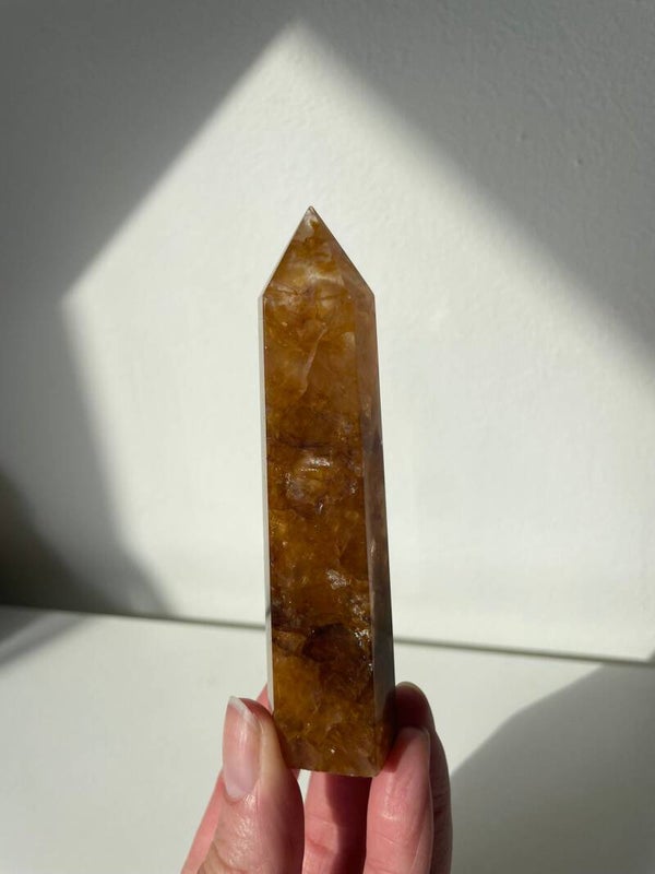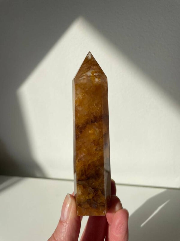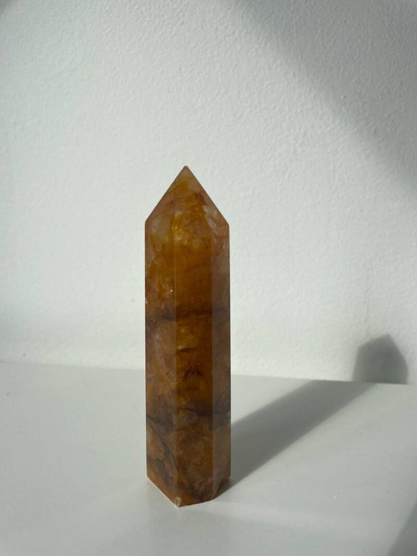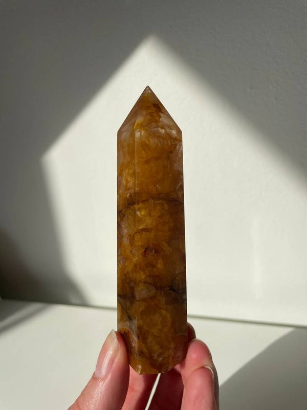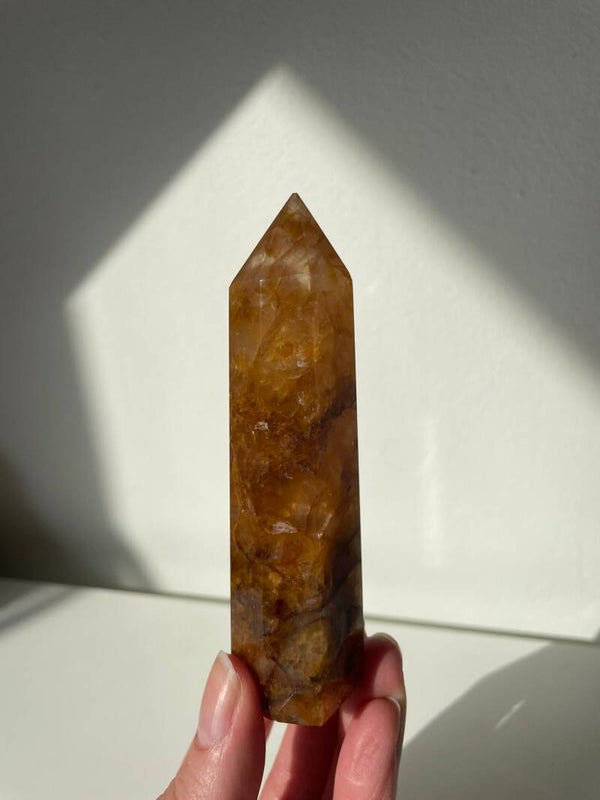 Golden Healer is een zachte, goudgele variant van kwarts die bekendstaat om z’n warme en opbeurende uitstraling. De kleur komt van natuurlijke ijzerinsluitingen en geeft de steen een heldere, zonnige gloed. Denk aan een zachte straal licht die energie en helderheid terugbrengt, stap voor stap.