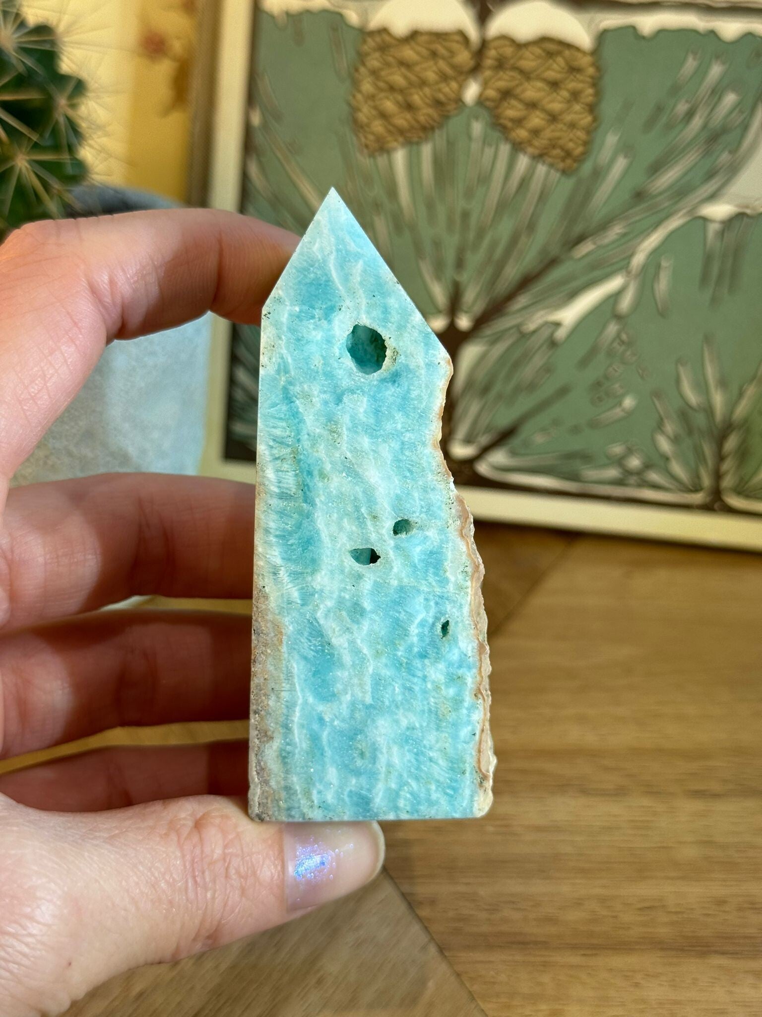 Kort over de werking: Blauwe Hemimorfiet staat bekend om zijn rustgevende en ondersteunende energie. Hij helpt bij helder denken, overzicht bewaren en momenten van innerlijke rust creëren.