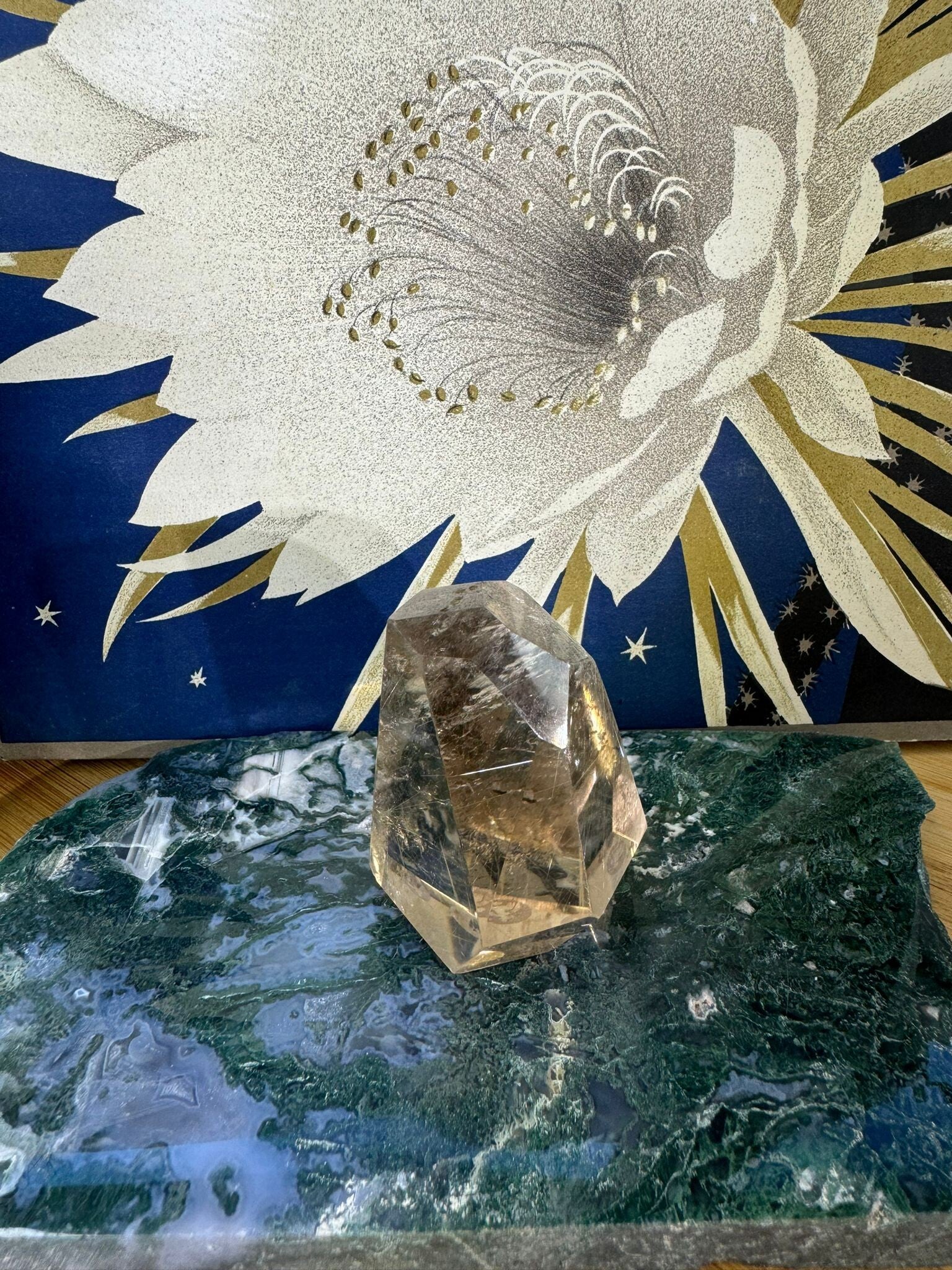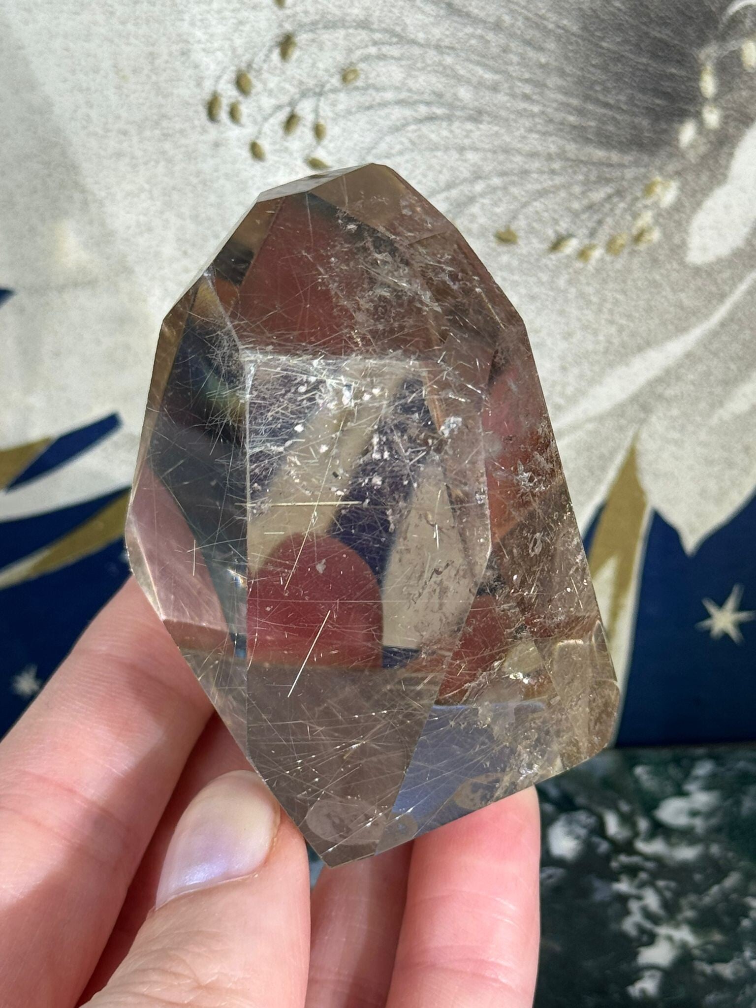 Goudrutiel is een bijzondere kwartsvariant met fijne, glinsterende haartjes van rutiel erin. Deze haartjes lijken op gouden draadjes die door de steen lopen en geven het kristal een warme, sprankelende uitstraling. Elke steen is uniek, want de patronen van de draadjes variëren van subtiel tot opvallend dramatisch.