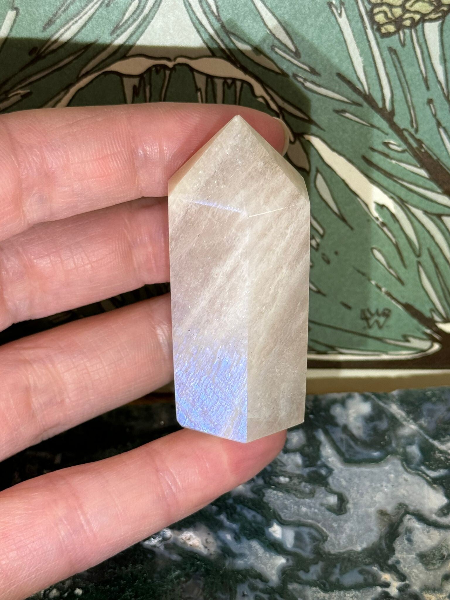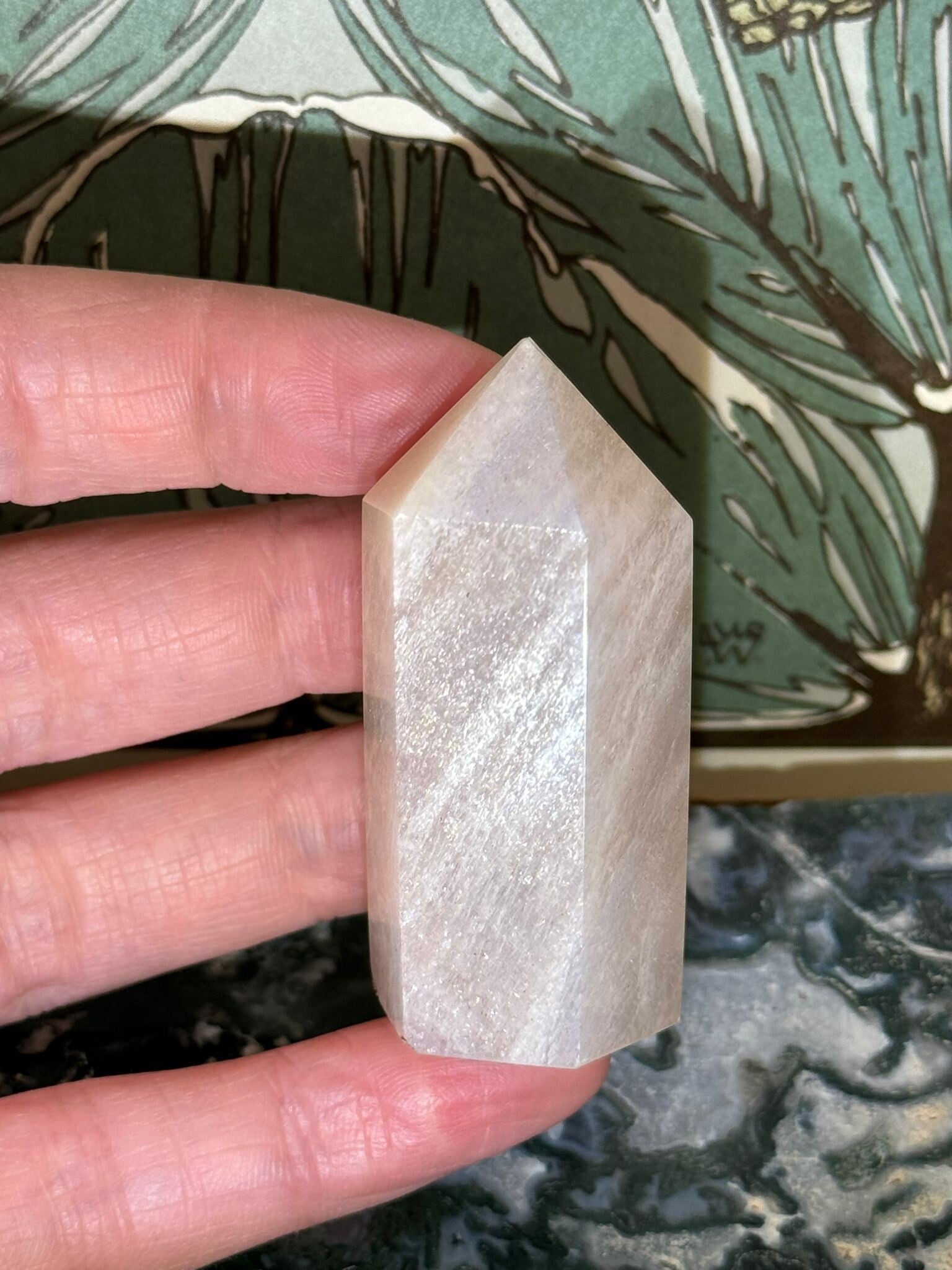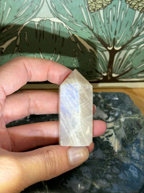 Men zegt dat maansteen helpt om emoties in balans te brengen en je intuïtie te versterken — alsof je innerlijke kompas net wat beter werkt. De steen straalt rust uit, maar heeft ook iets dromerigs en hoopvols, alsof hij fluistert: “Vertrouw het ritme van de maan.”