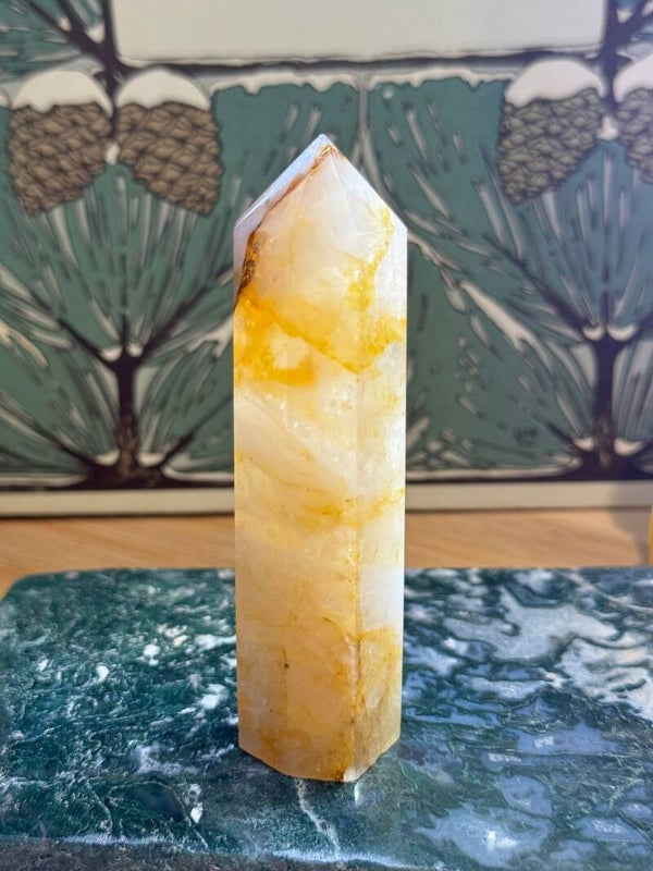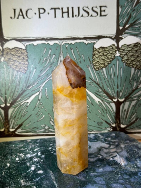 Golden Healer is een zachte, goudgele variant van kwarts die bekendstaat om z’n warme en opbeurende uitstraling. De kleur komt van natuurlijke ijzerinsluitingen en geeft de steen een heldere, zonnige gloed. Denk aan een zachte straal licht die energie en helderheid terugbrengt, stap voor stap.