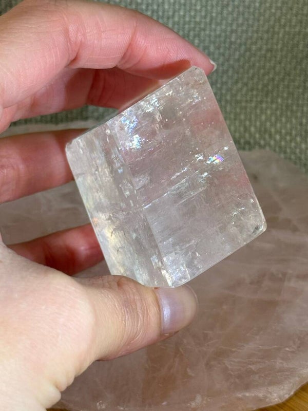 Iceland Spar is een doorzichtige, kleurloze calciet variant die opvalt door zijn glasheldere uiterlijk en schitterende optische eigenschappen. Wanneer je er doorheen kijkt, lijkt het alsof beelden of letters worden verdubbeld – een fenomeen dat bekendstaat als dubbelbreking. Deze bijzondere steen wordt voornamelijk gevonden in IJsland, maar ook in andere kalkrijke gebieden wereldwijd.