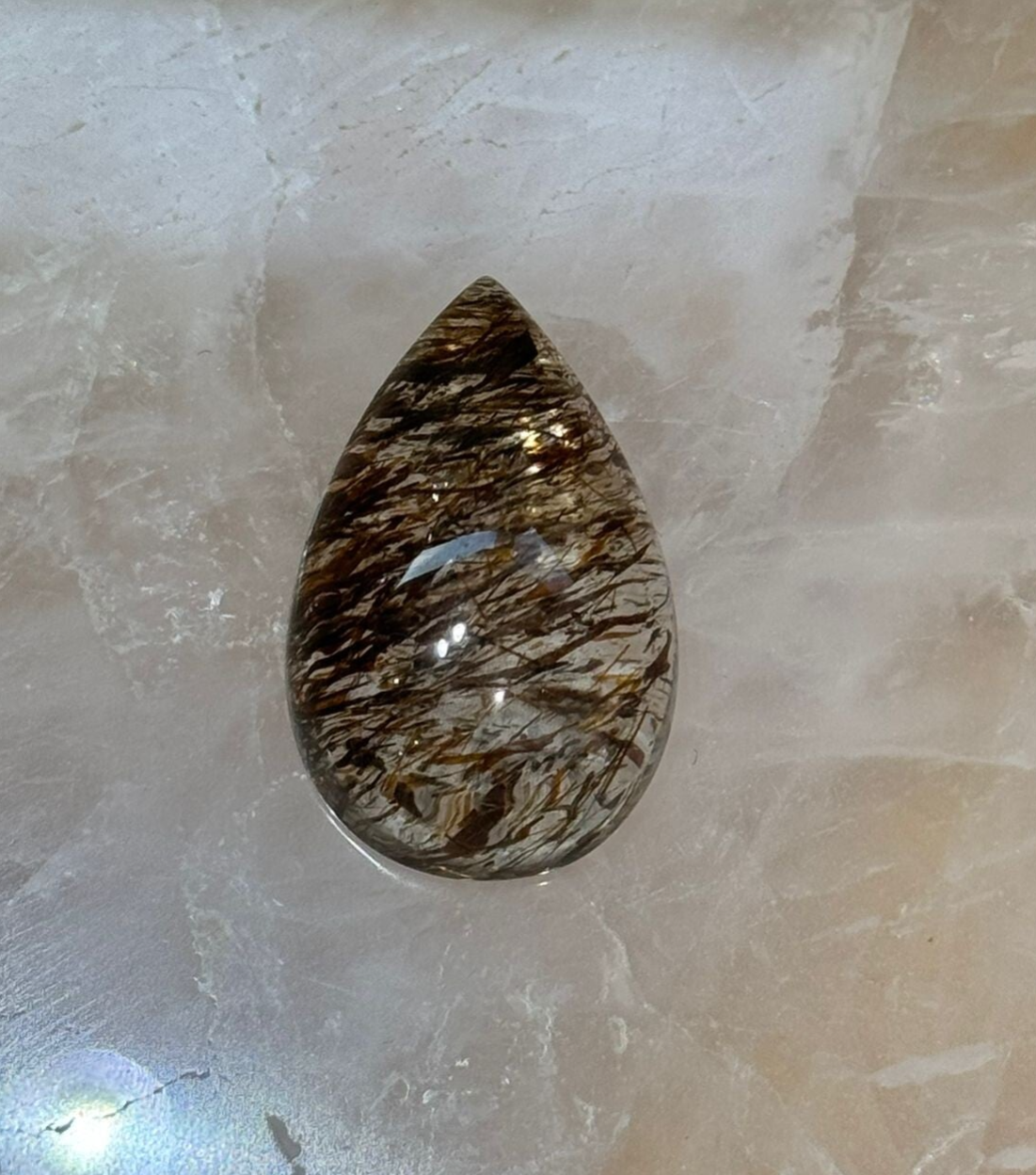Rutielkwarts is een van die stenen waarbij je automatisch even blijft kijken. Heldere tot rookachtige kwarts, gevuld met fijne gouden, koperkleurige of soms zelfs zilveren draadjes van rutiel. Alsof de natuur zelf kleine zonnestraaltjes heeft achtergelaten in het kristal. Geen twee stukken zijn hetzelfde: het ene heeft een elegante waaier, het andere een rommelig bundeltje alsof het kristal net een bad hair day had, maar dan prachtig.