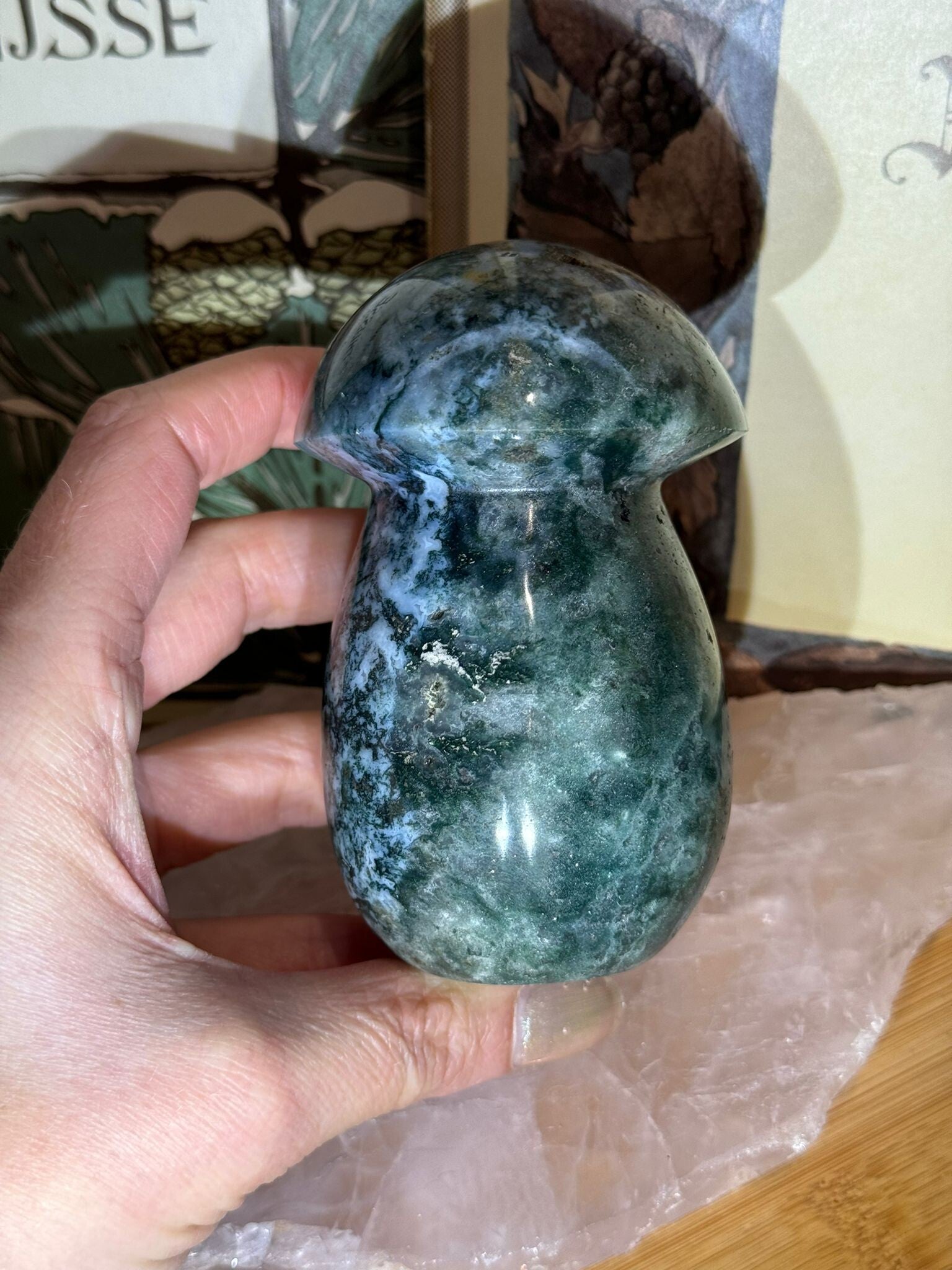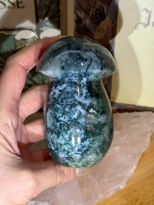 Mosagaat is een prachtige variëteit van agaat die eruitziet alsof er kleine mosjes of takjes in de steen zijn gegroeid. Het geheim zit in de insluitsels van mineralen, meestal groen van kleur, die doorzichtig of wit kwarts doorkruisen. Daardoor lijkt elke steen een mini-landschapje op zichzelf.