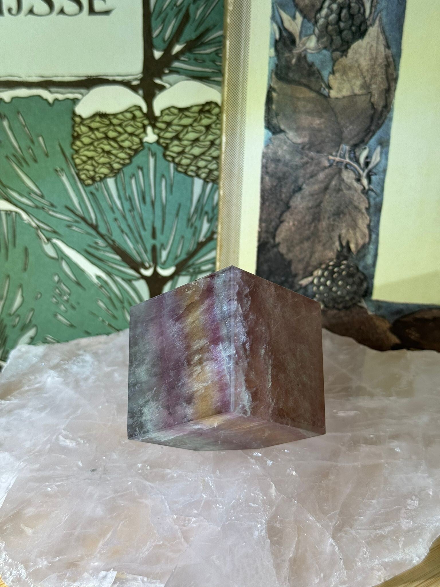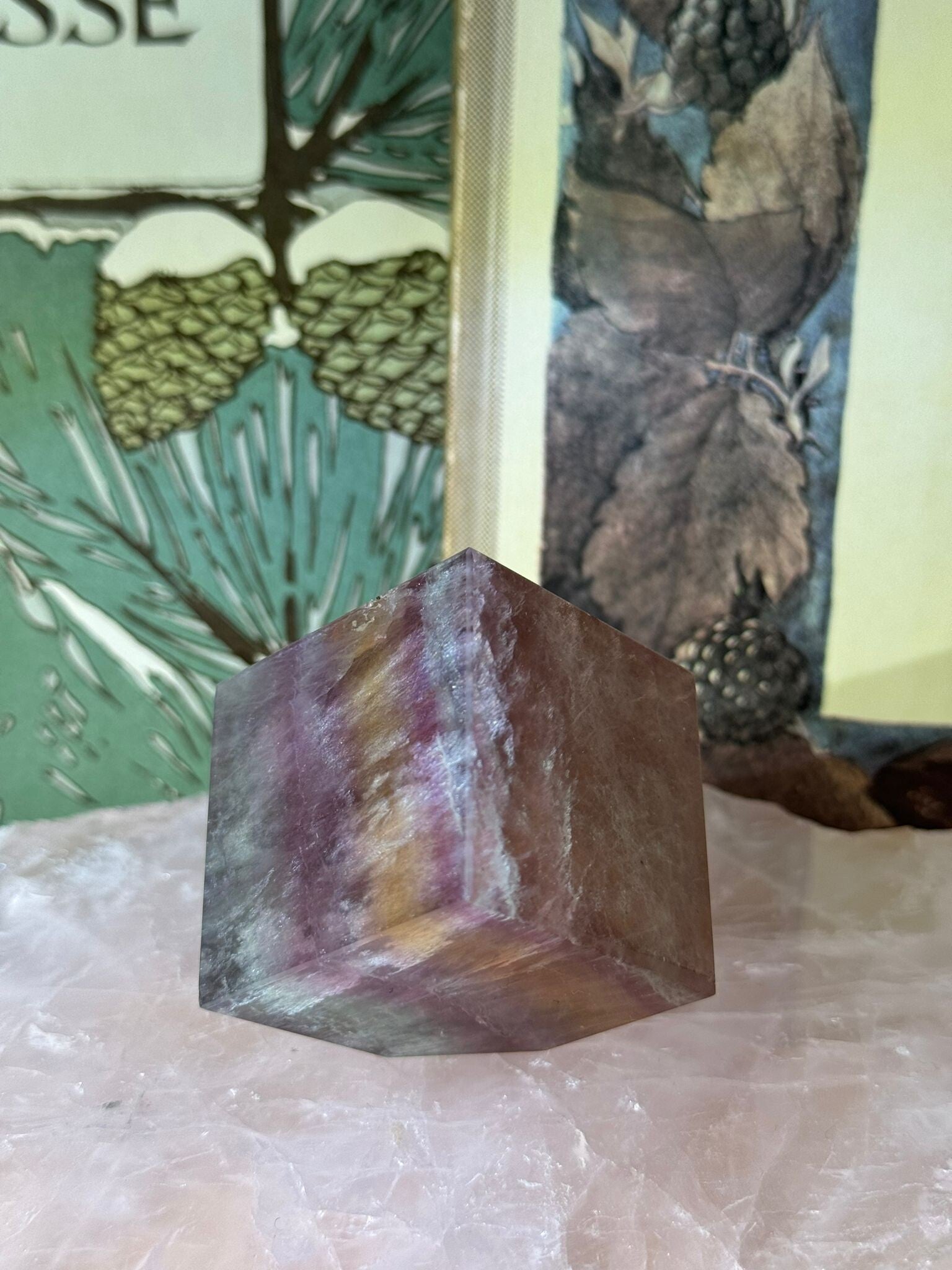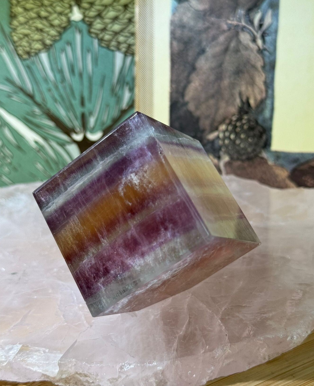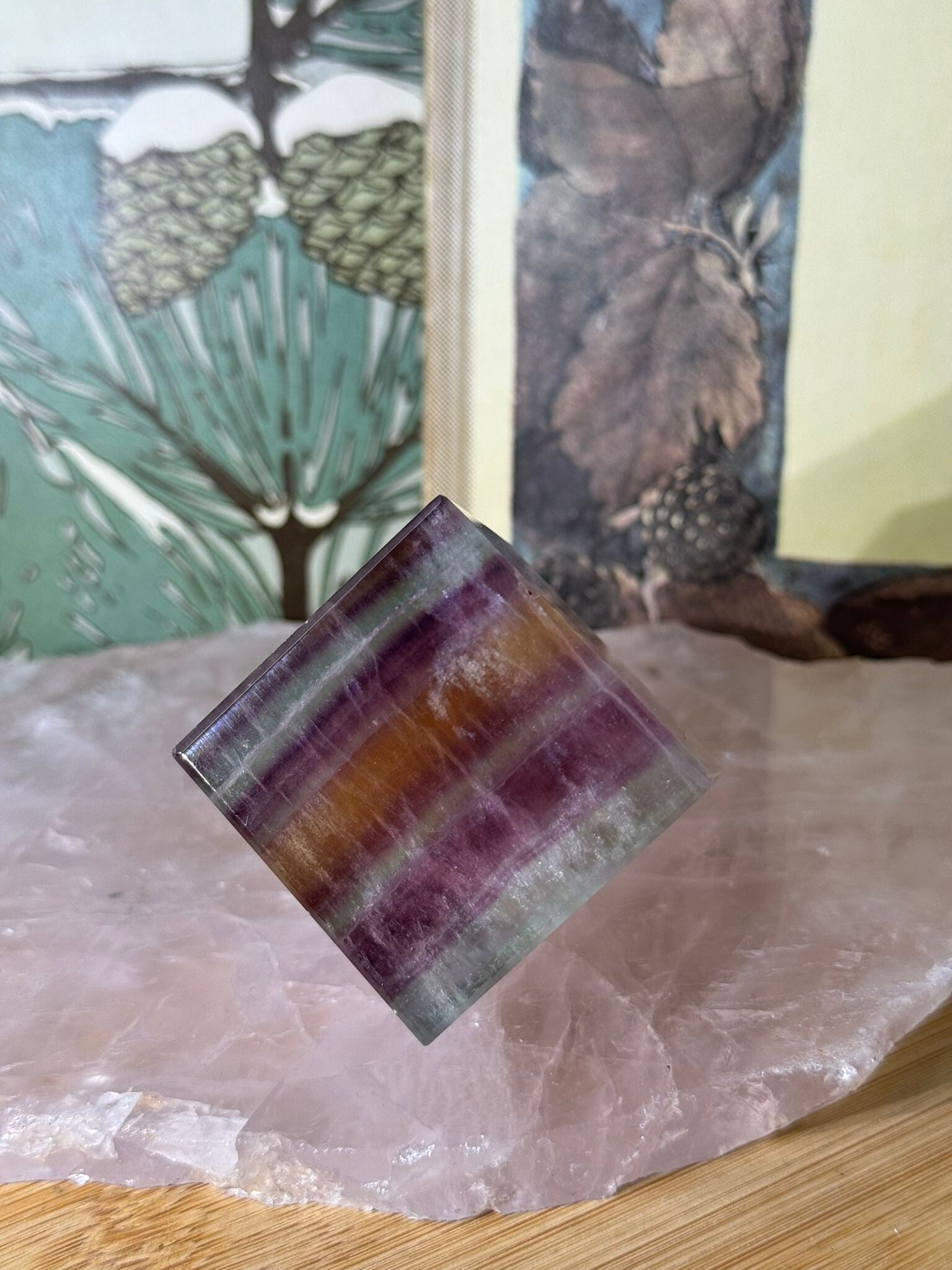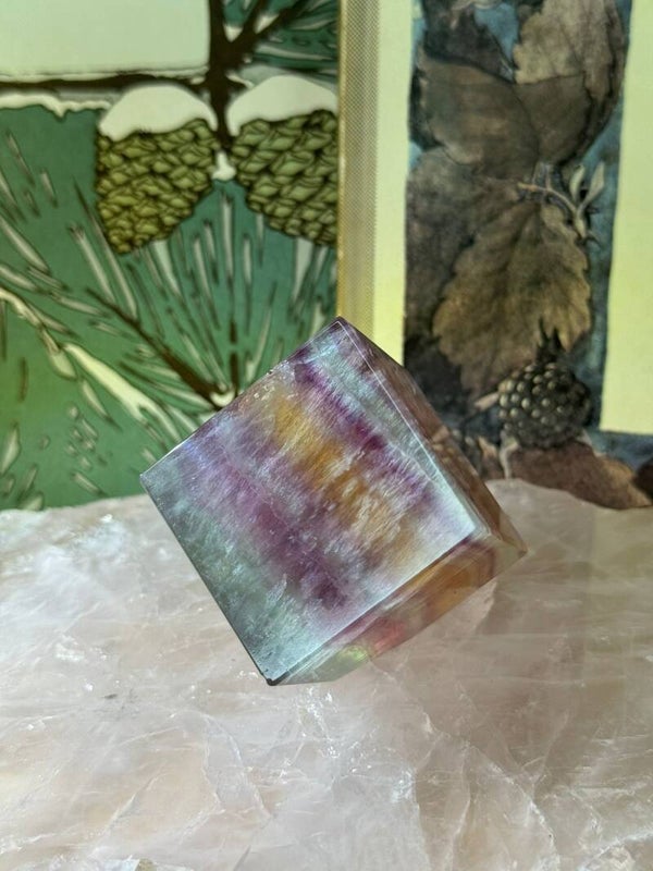 Leuk weetje: de kleuren in regenboogfluoriet ontstaan doordat er tijdens de groei van het mineraal telkens net een ander spoortje element wordt opgenomen. Je kijkt dus eigenlijk naar de laagjesgeschiedenis van de steen!