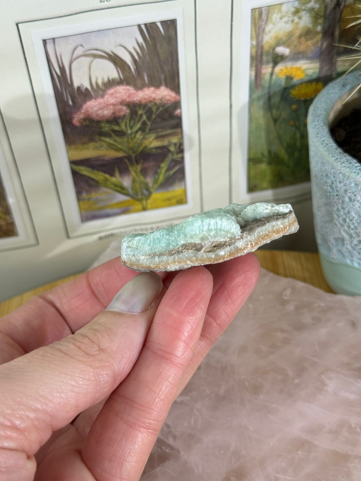 Deze variant van aragoniet wordt onder andere gevonden in Pakistan en China. Het is een fijne steen voor mensen die snel overweldigd raken of veel voelen. Blauwe aragoniet helpt om je emoties in goede banen te leiden en je hoofd een beetje op te ruimen. Niet zweverig, maar gewoon: helder.