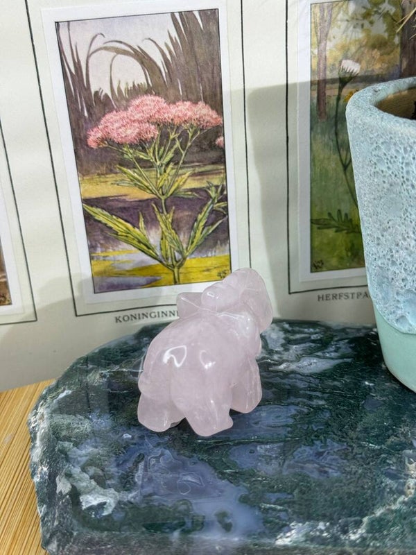 Rozenkwarts is misschien wel de meest geliefde roze edelsteen ter wereld. Met zijn zachte, melkroze kleur en kalme uitstraling heeft hij iets heel uitnodigends. De kleur ontstaat door sporen van titanium, ijzer of mangaan die tijdens de vorming in het kwarts terechtkomen. Daardoor heeft elke steen weer nét een andere tint roze: van heel licht en doorschijnend tot warm en fluweelachtig.