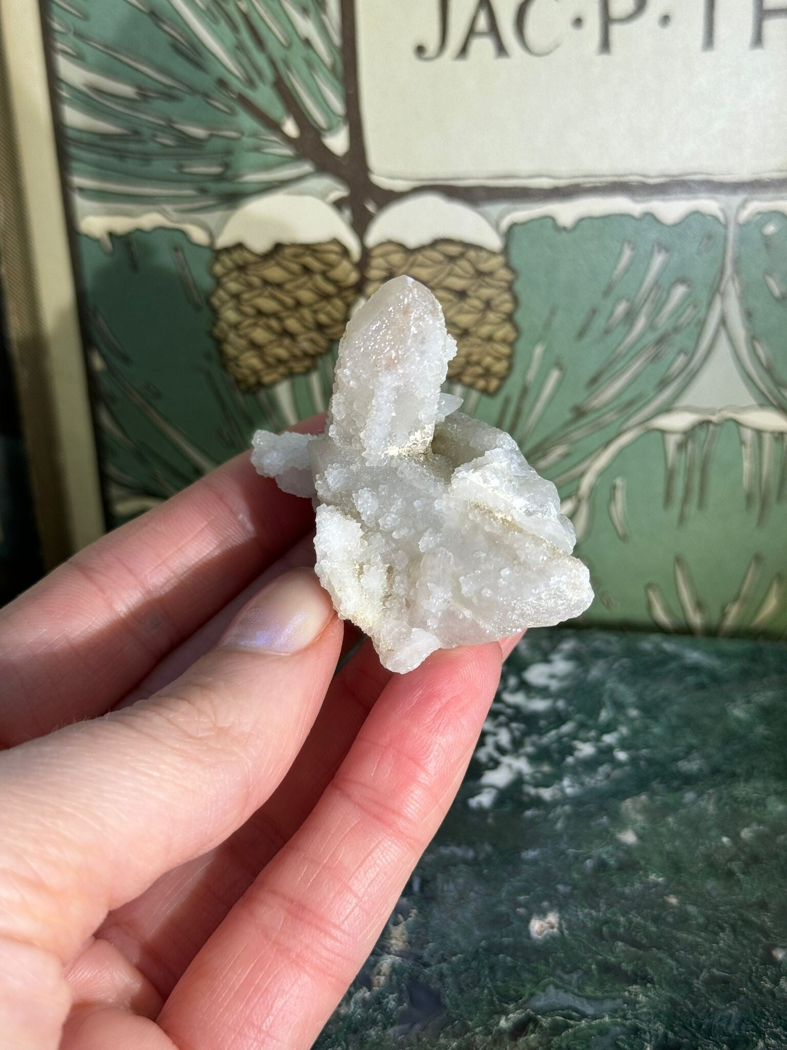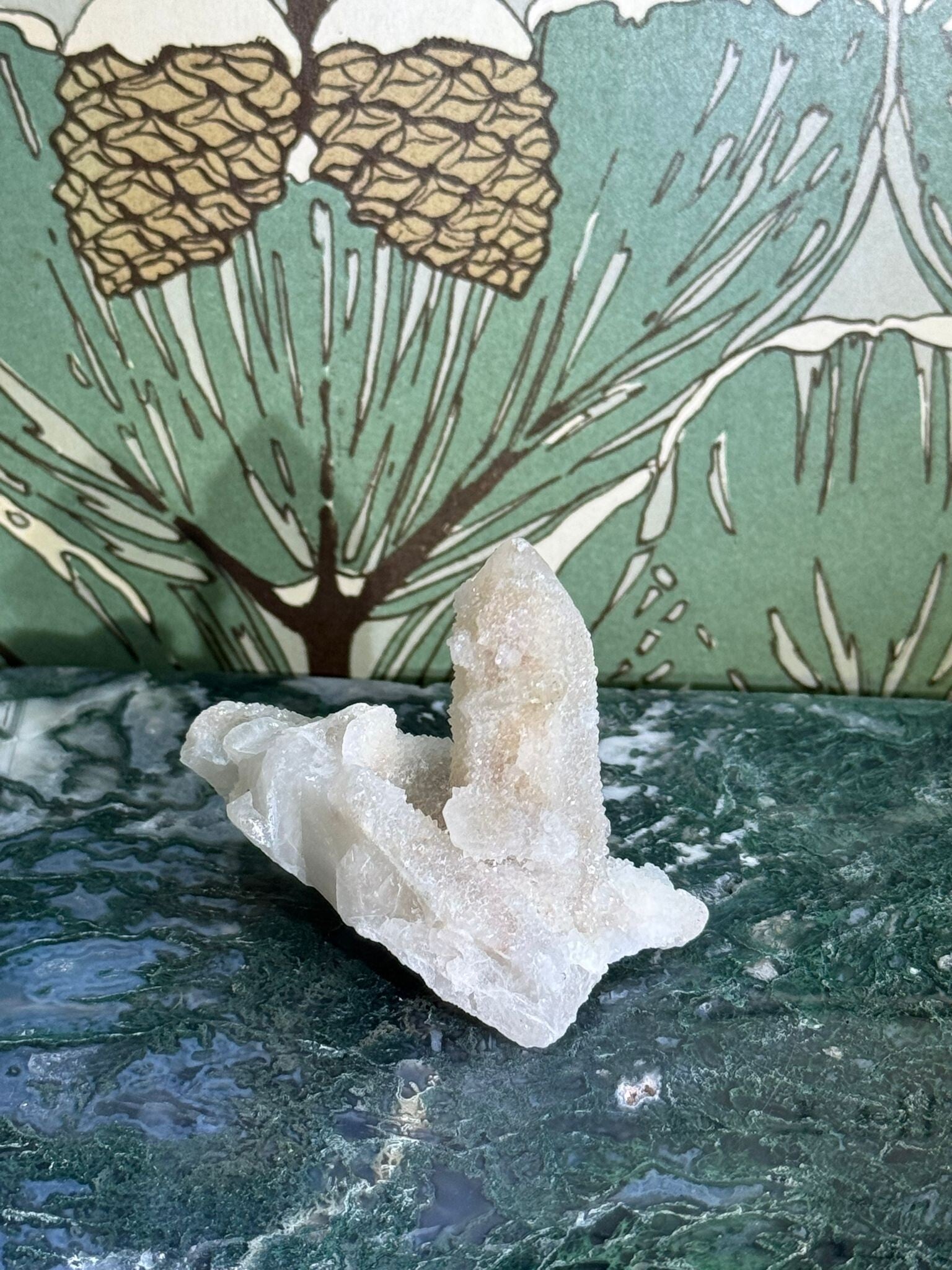 Leuk weetje: Spirit kwarts wordt ook wel “Cactus Kwarts” genoemd wanneer de kleine kristalletjes uit een centrale punt lijken te groeien, alsof een miniatuur cactus uit de steen oprijst. Een prachtig natuurwonder om van dichtbij te bekijken!