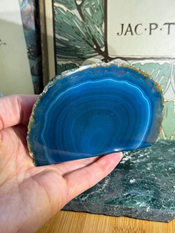 Agaat op standvlak Blauw ( Bijgekleurd ) - Nr 01