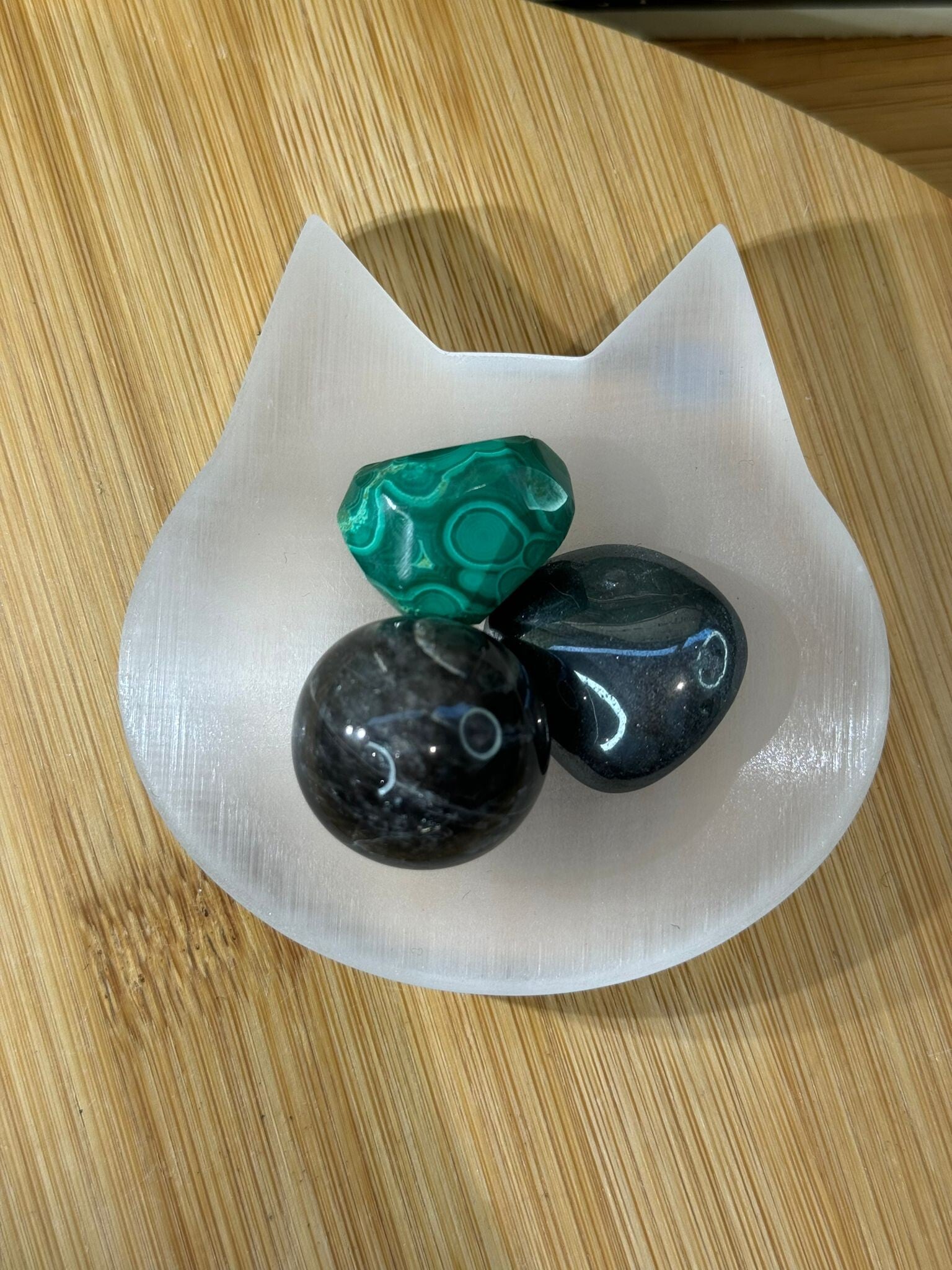 Seleniet oplaad / sieraden schaal (tje) Kat
