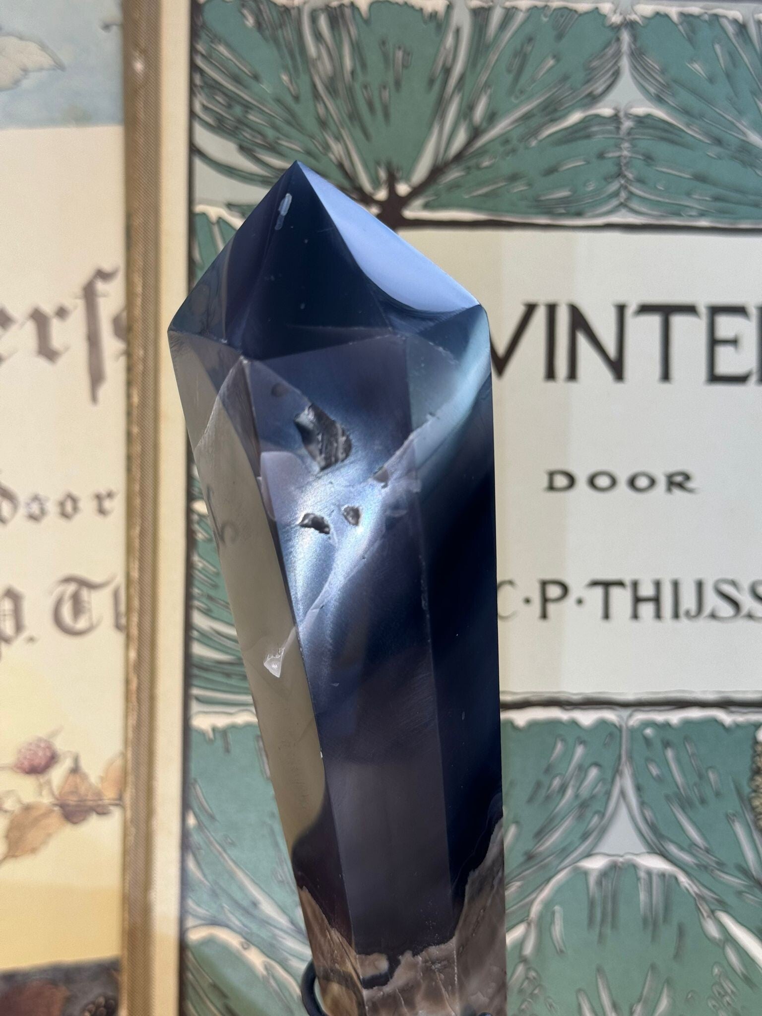Vulkaan Agaat Punt ( Vogel ) op standaard ( UV Reactief ) - Nr 02