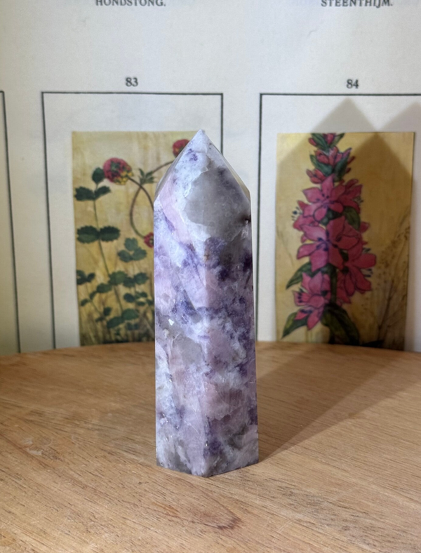 Plumblossom Agaat is een bijzondere agaatvariant met zachte, bloemachtige patronen die doen denken aan bloesems in de lente. De steen combineert meestal tinten zachtroze, wit en lichtgrijs, waardoor elke steen uniek oogt, alsof de natuur haar penseel heeft gebruikt om kleine kunstwerkjes te maken.