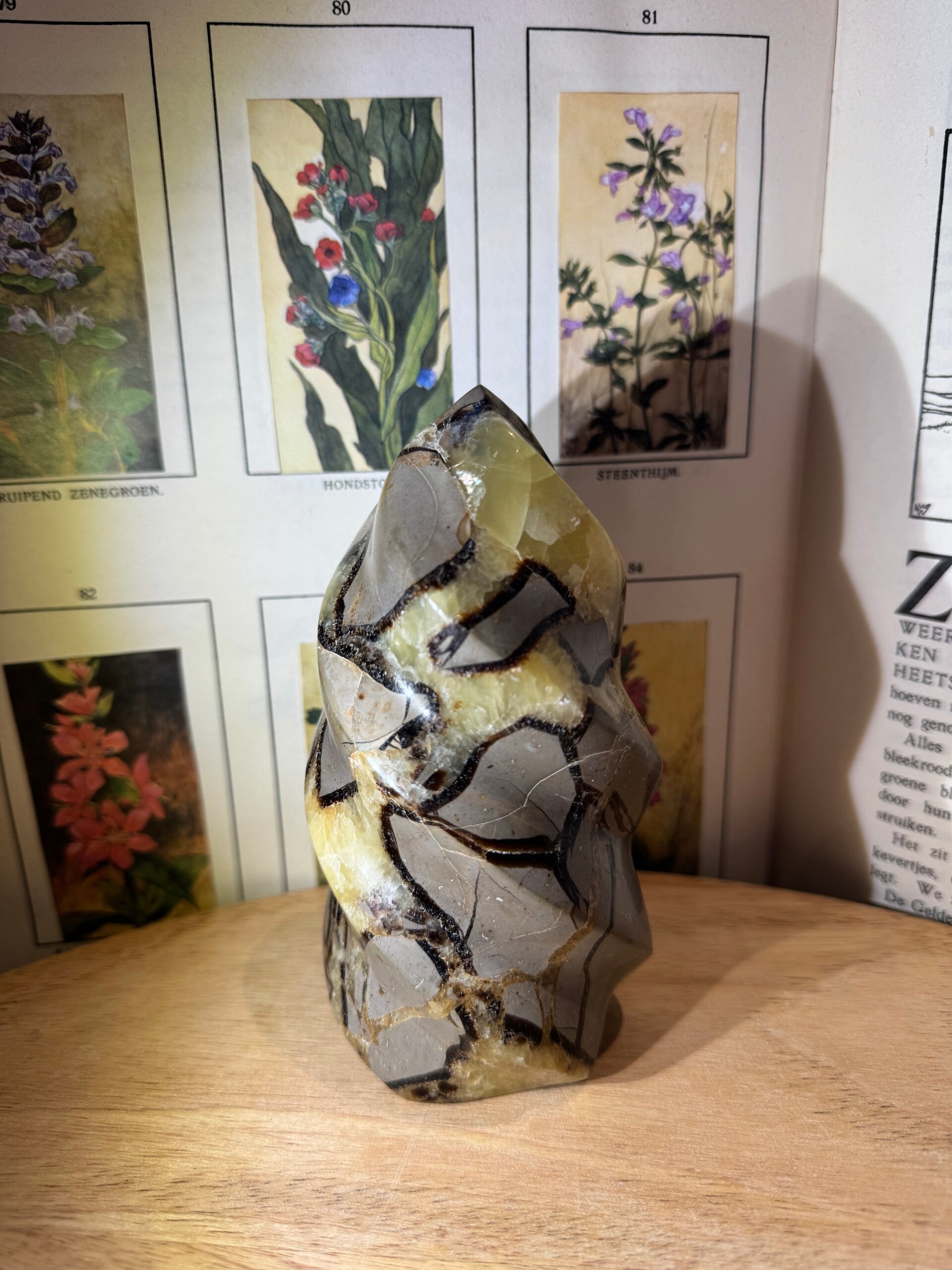 Leuk weetje: septarie wordt ook wel “drakensteen” genoemd, omdat het patroon doet denken aan de geschubde huid van een mythische draak. Een beetje natuurlijke fantasy, rechtstreeks uit de aarde.