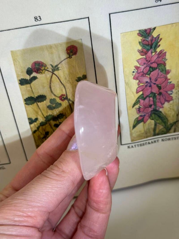 Rozenkwarts is misschien wel de meest geliefde roze edelsteen ter wereld. Met zijn zachte, melkroze kleur en kalme uitstraling heeft hij iets heel uitnodigends. De kleur ontstaat door sporen van titanium, ijzer of mangaan die tijdens de vorming in het kwarts terechtkomen. Daardoor heeft elke steen weer nét een andere tint roze: van heel licht en doorschijnend tot warm en fluweelachtig.