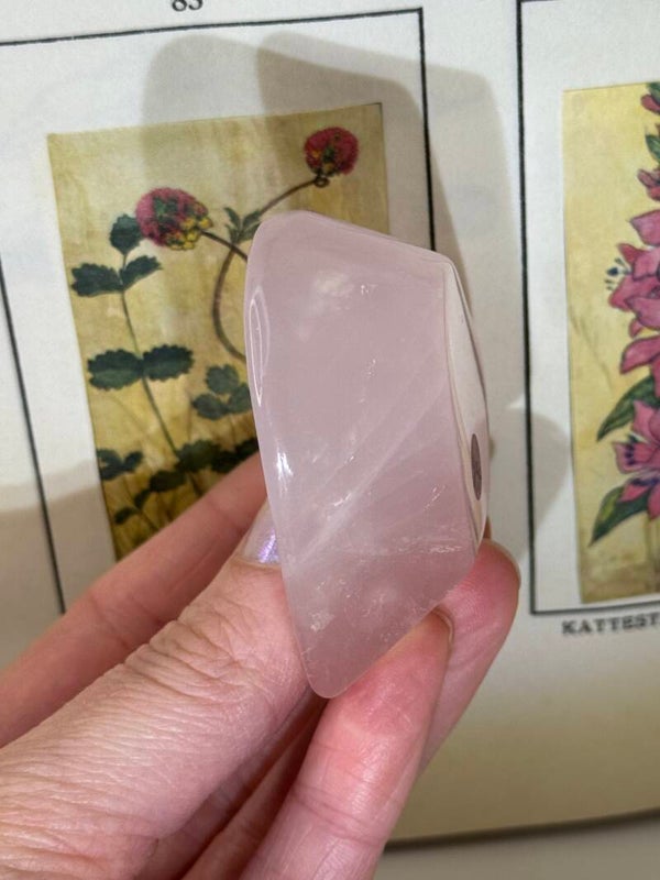 Rozenkwarts is misschien wel de meest geliefde roze edelsteen ter wereld. Met zijn zachte, melkroze kleur en kalme uitstraling heeft hij iets heel uitnodigends. De kleur ontstaat door sporen van titanium, ijzer of mangaan die tijdens de vorming in het kwarts terechtkomen. Daardoor heeft elke steen weer nét een andere tint roze: van heel licht en doorschijnend tot warm en fluweelachtig.