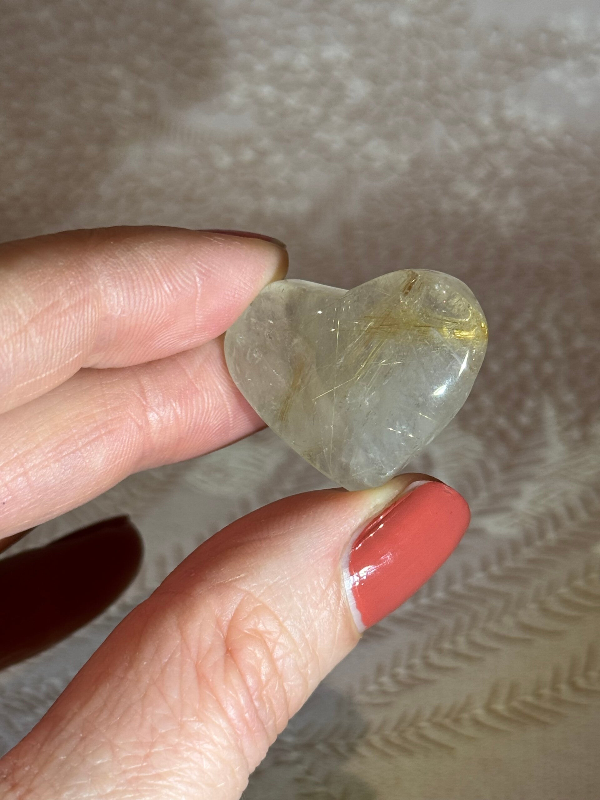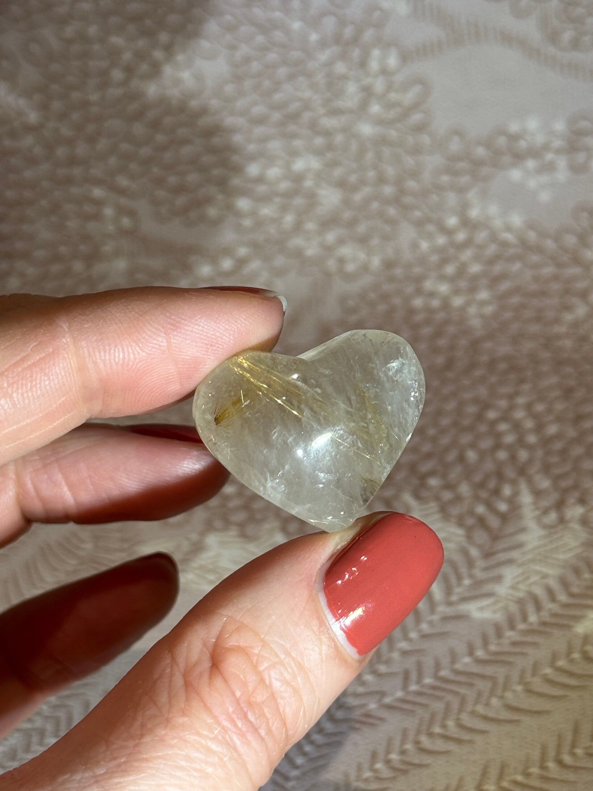 Goudrutiel is een bijzondere kwartsvariant met fijne, glinsterende haartjes van rutiel erin. Deze haartjes lijken op gouden draadjes die door de steen lopen en geven het kristal een warme, sprankelende uitstraling. Elke steen is uniek, want de patronen van de draadjes variëren van subtiel tot opvallend dramatisch.
