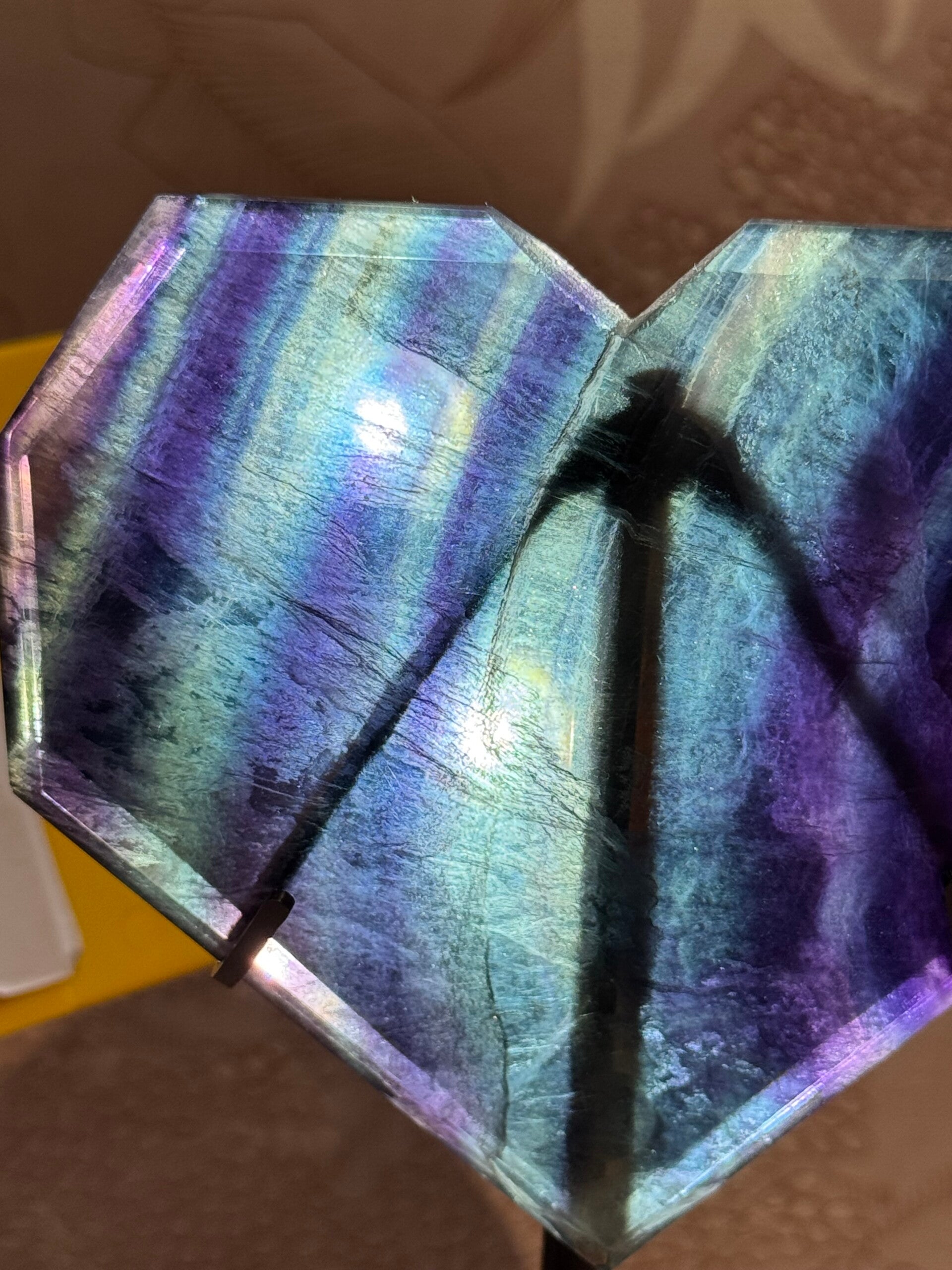 Regenboog Fluoriet Hart op standaard - Nr 02