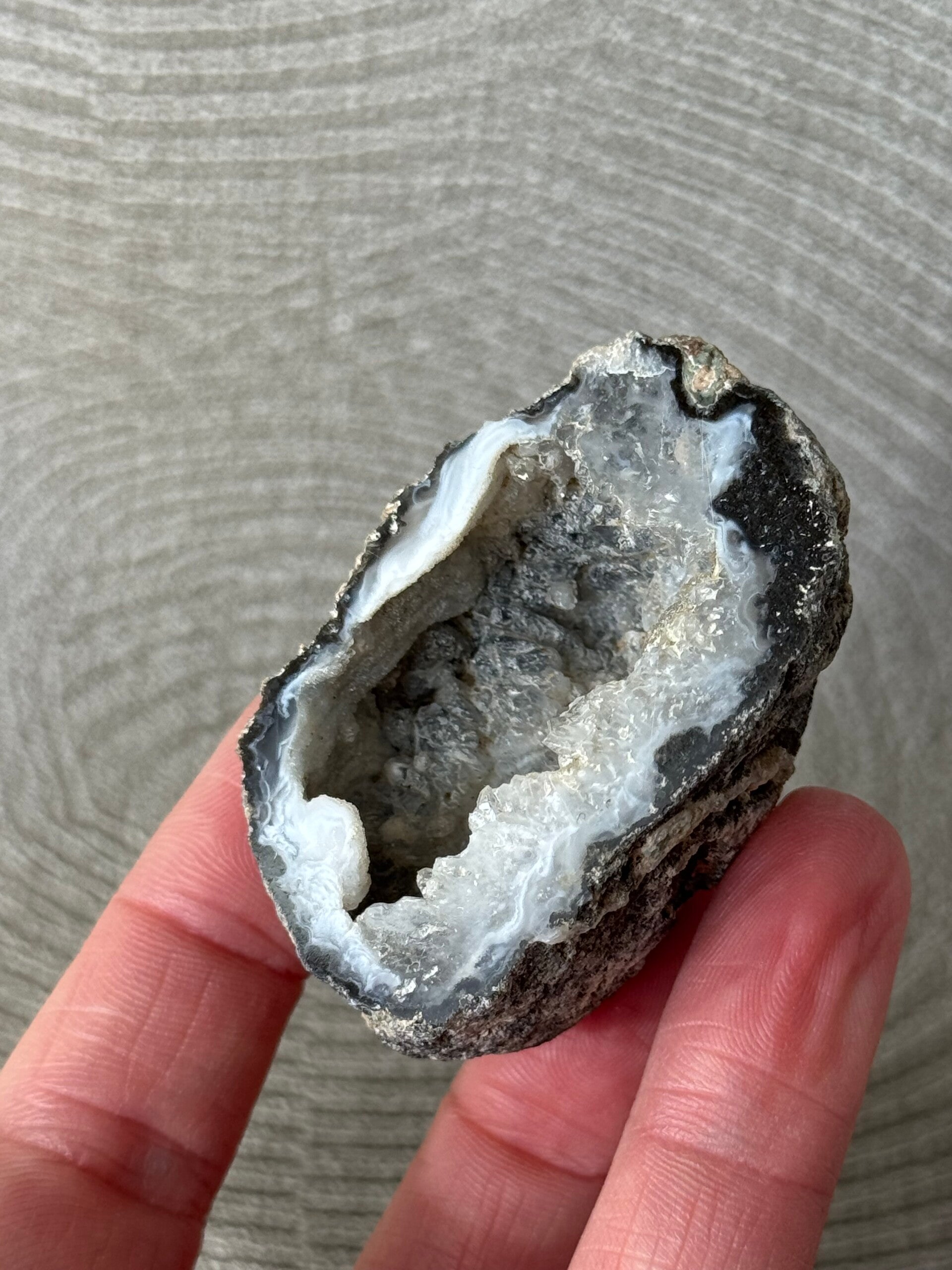 De combinatie van agaat en kristallen maakt deze geodes niet alleen mooi om naar te kijken, maar ook geliefd om hun kalme en stabiele energie. Agaat staat bekend om zijn aardende werking en helpt bij het creëren van een rustige, evenwichtige sfeer. De kristallen binnenin zorgen voor een frisse, heldere uitstraling.