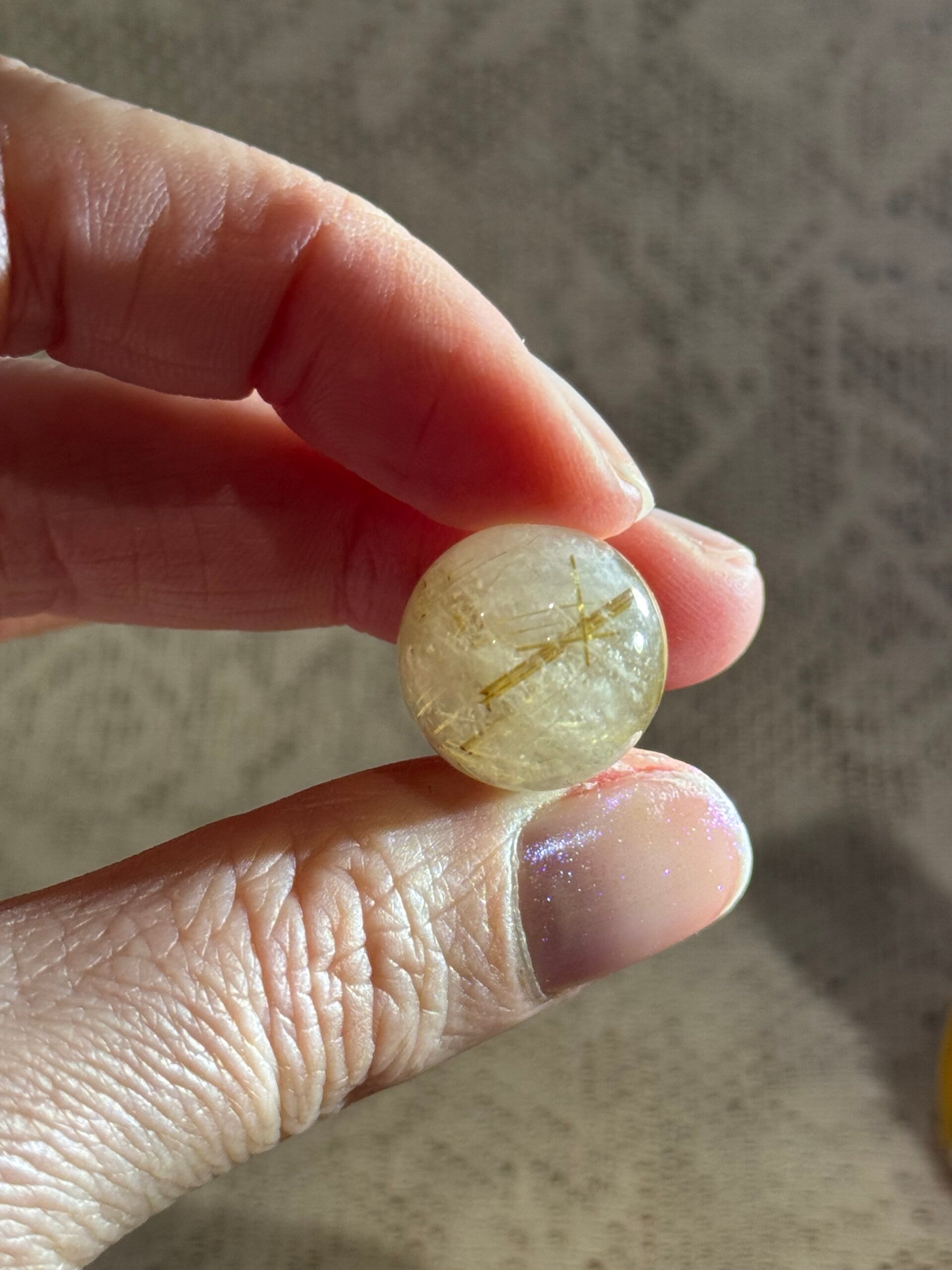 Goudrutiel is een bijzondere kwartsvariant met fijne, glinsterende haartjes van rutiel erin. Deze haartjes lijken op gouden draadjes die door de steen lopen en geven het kristal een warme, sprankelende uitstraling. Elke steen is uniek, want de patronen van de draadjes variëren van subtiel tot opvallend dramatisch.