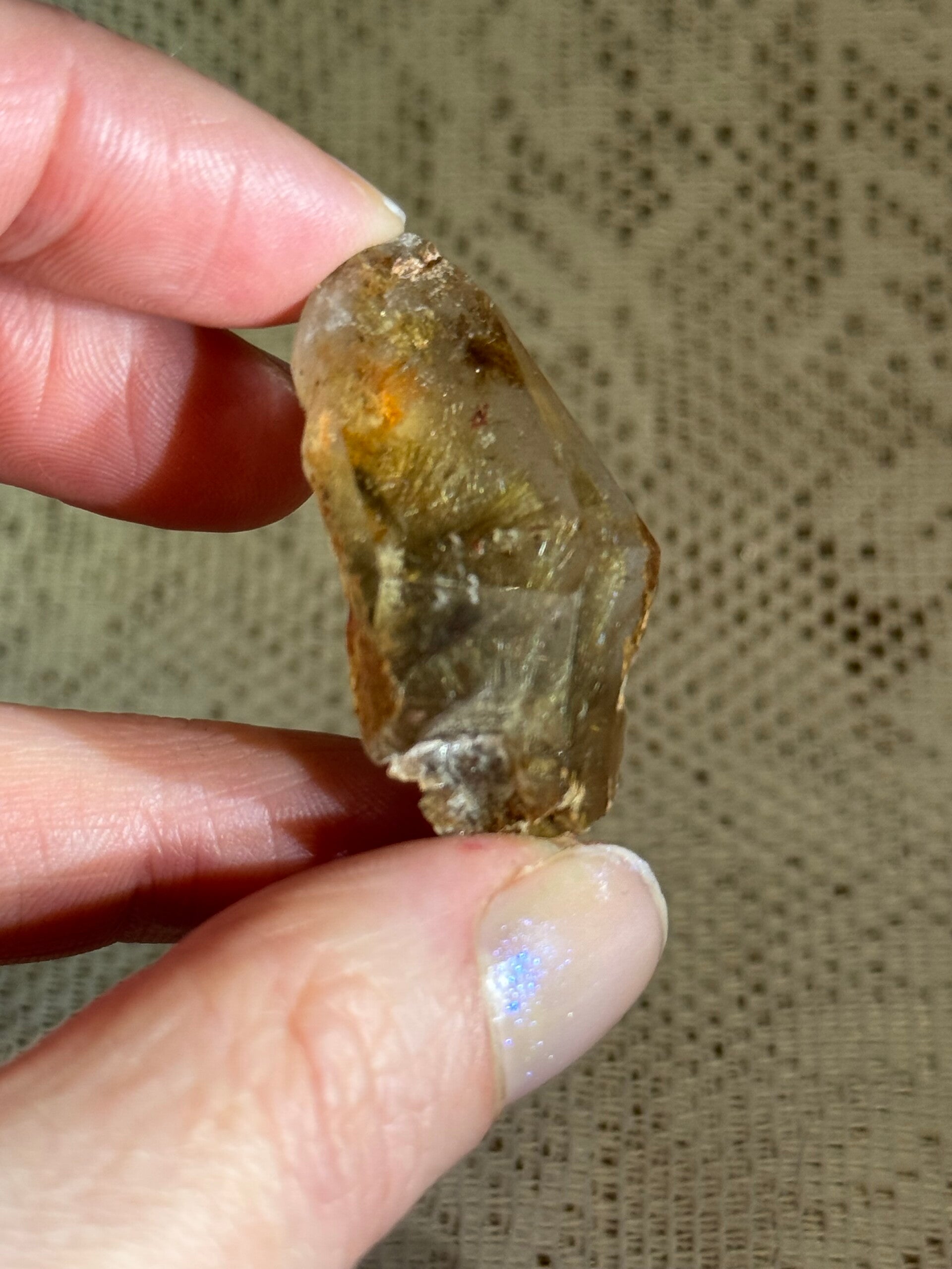 Deze bijzondere steen wordt voornamelijk gevonden in Brazilië, maar ook in landen als India en Madagaskar. Het kristal is miljoenen jaren oud en heeft door de insluitsels een intrigerende diepte gekregen, alsof je in een andere wereld kijkt.