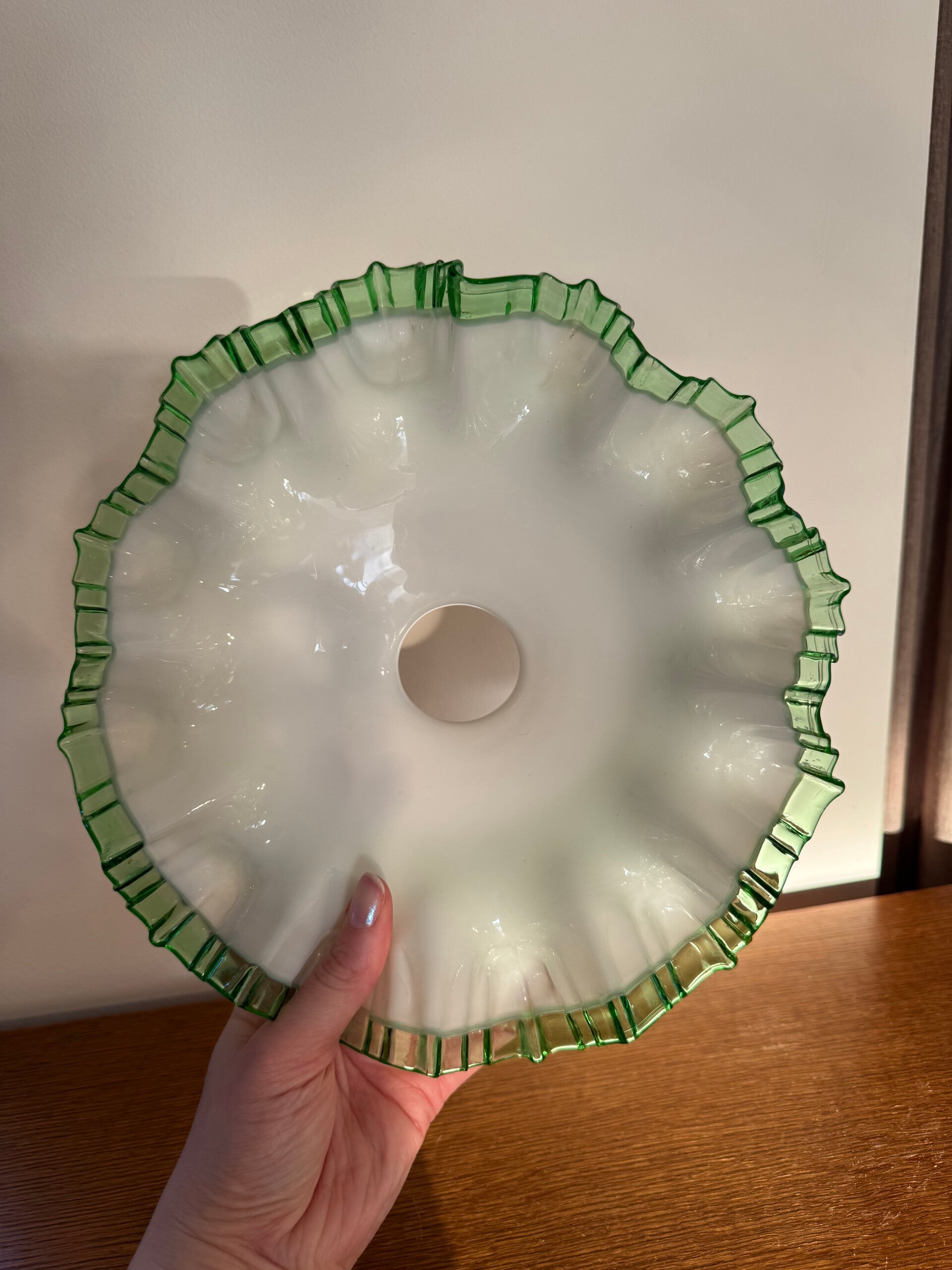 - Materiaal: melkglas (opaline glass)